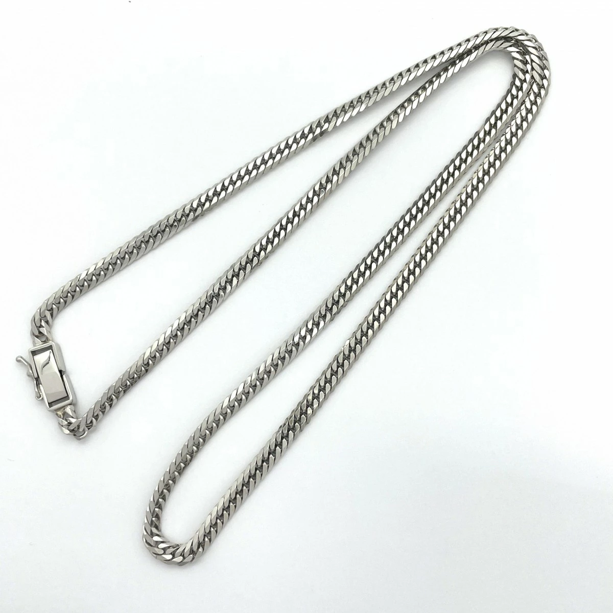 [5khe012] Pre-owned Platinum Pt850 Curb Chain Necklace, 6-sided, Double, 50.7cm, 30.2g, Unisex
