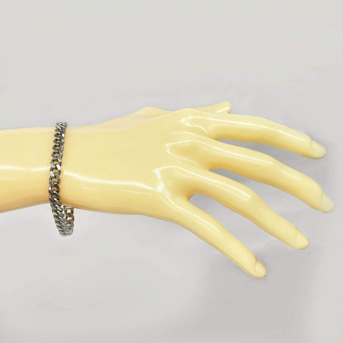 [5khh024] Pre-owned Platinum Pt850 Curb Chain Bracelet, Single, 2-Sided, 18.4cm, 30.3g, Unisex