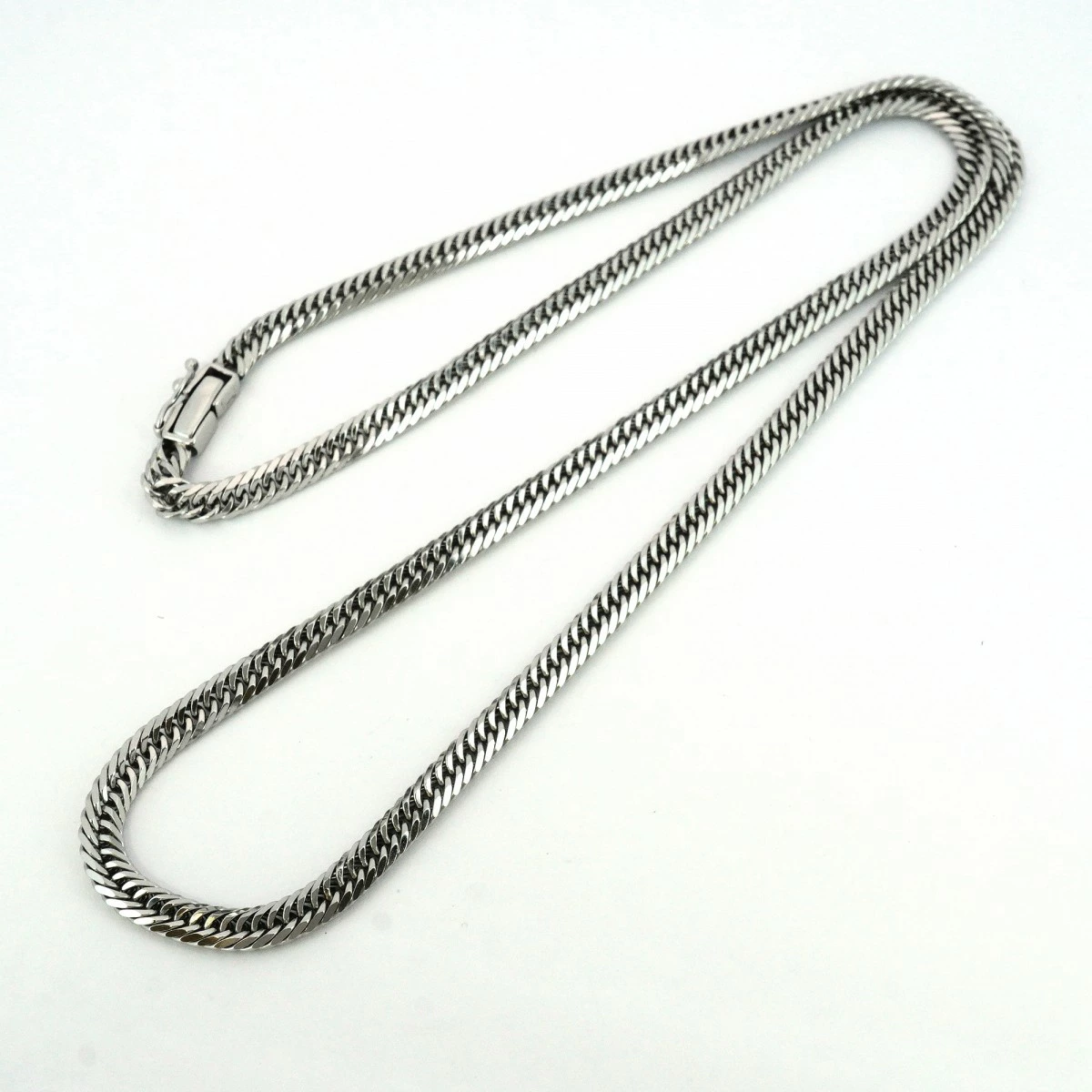 [5khm059] Pre-owned Pt900 Platinum 8-sided Triple Curb Chain Necklace, 50.4cm, 30.7g, Unisex