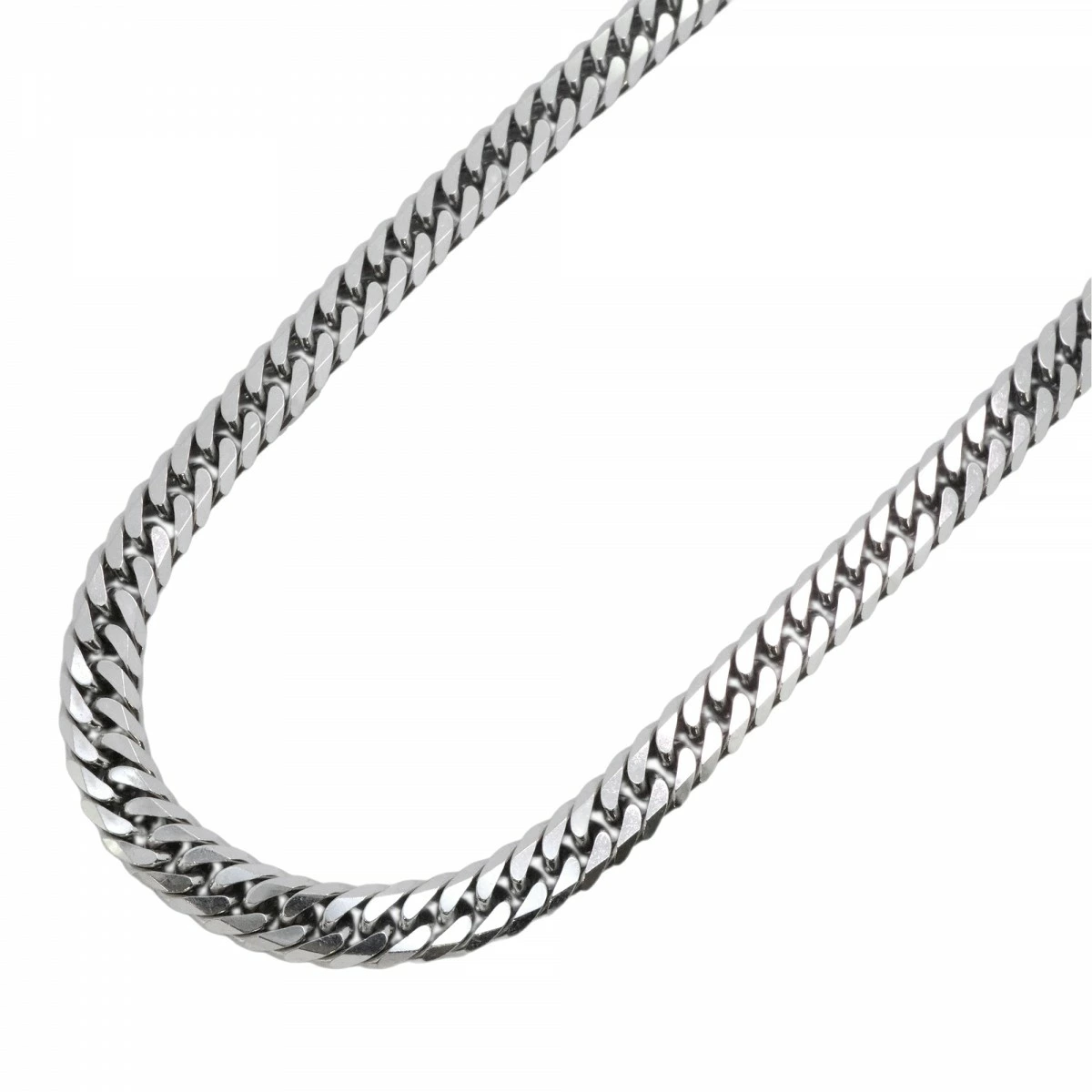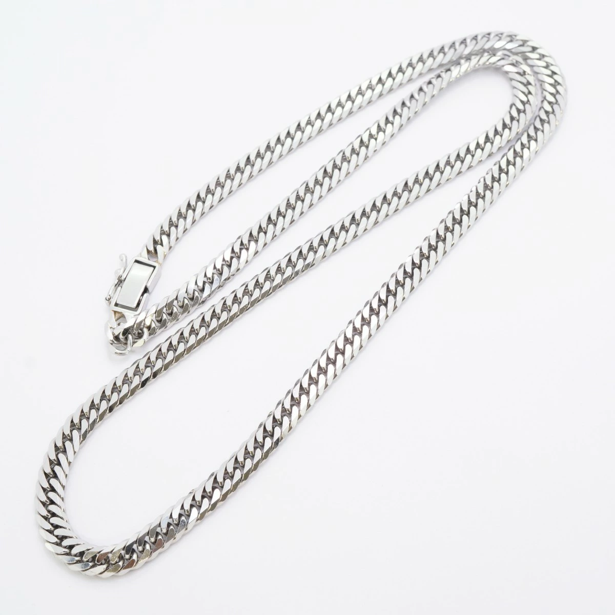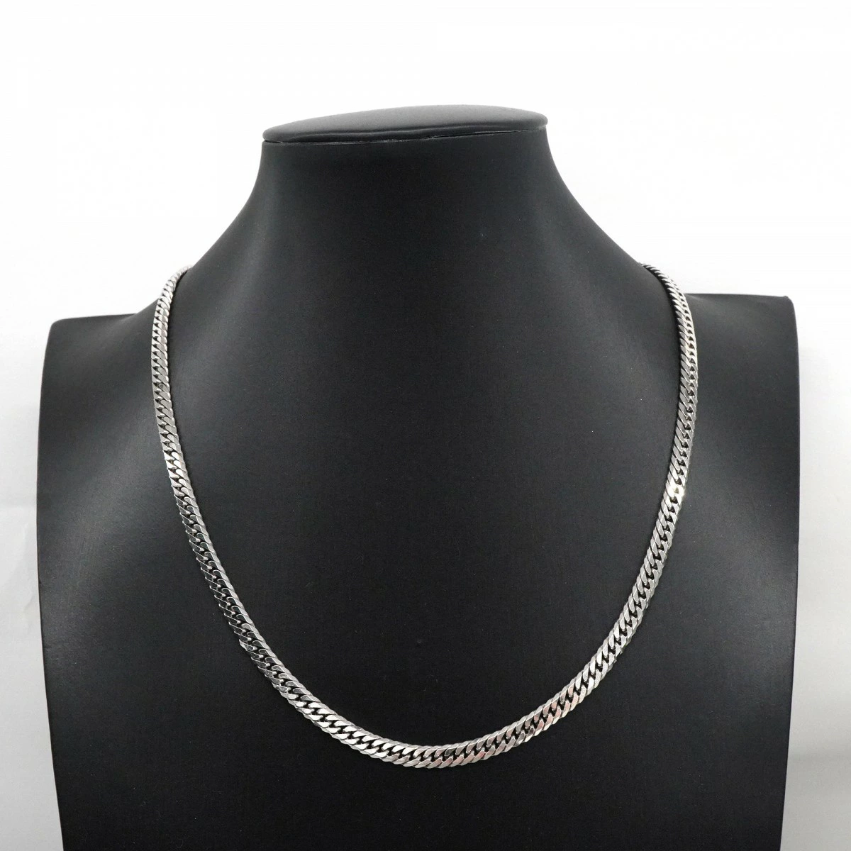 [5kho056] Pre-owned Platinum Pt850 Curb Chain Necklace, 6-Sided, Double, 50.5cm, 50.4g, Unisex