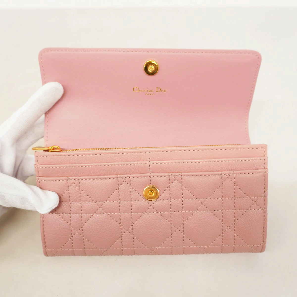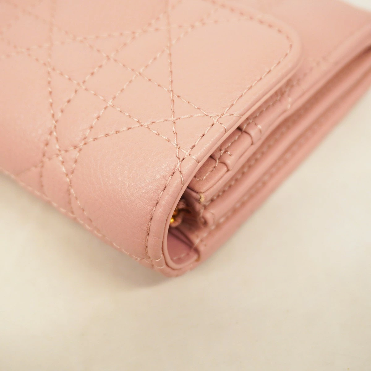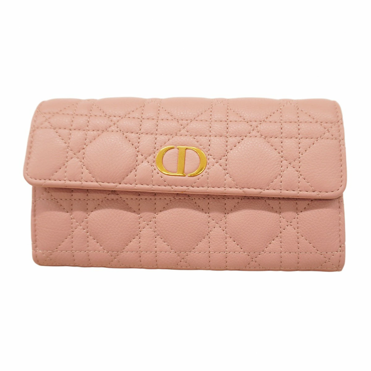 ★最終価格【5mb2197-h】クリスチャンディオール 長財布 カナージュ レザー ピンク ゴールド金具【中古】レディース