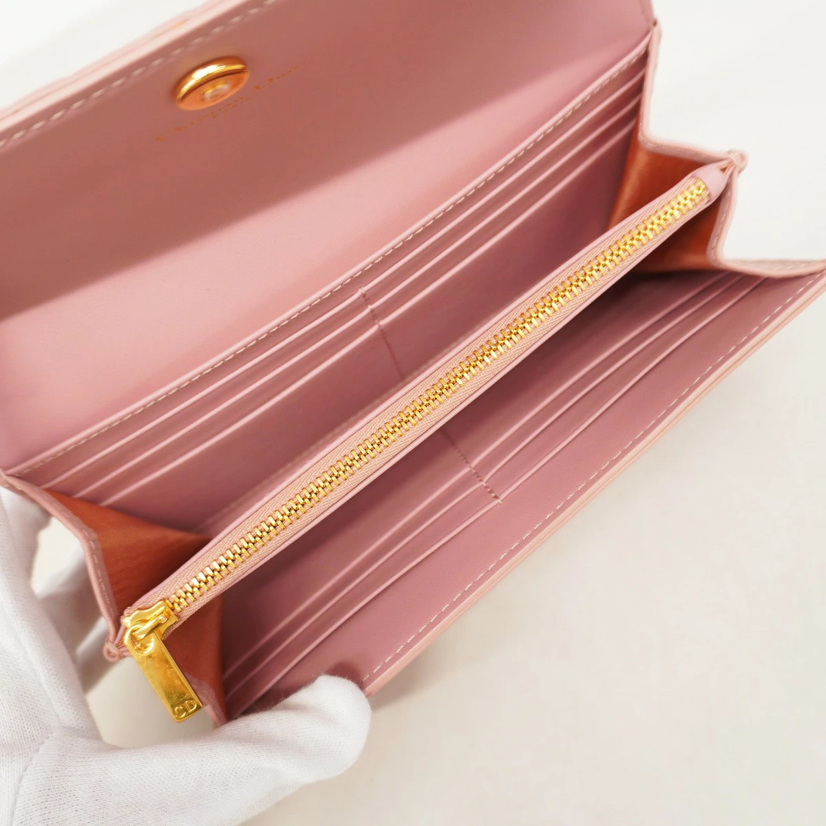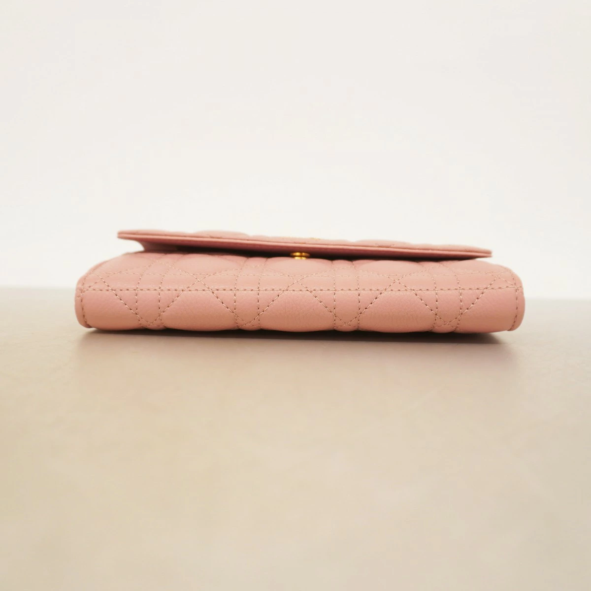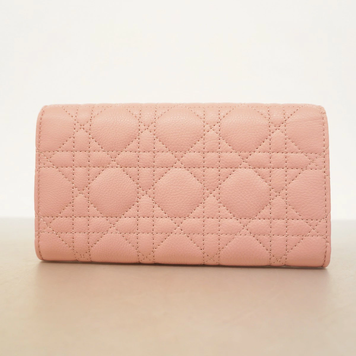 ★最終価格【5mb2197-h】クリスチャンディオール 長財布 カナージュ レザー ピンク ゴールド金具【中古】レディース
