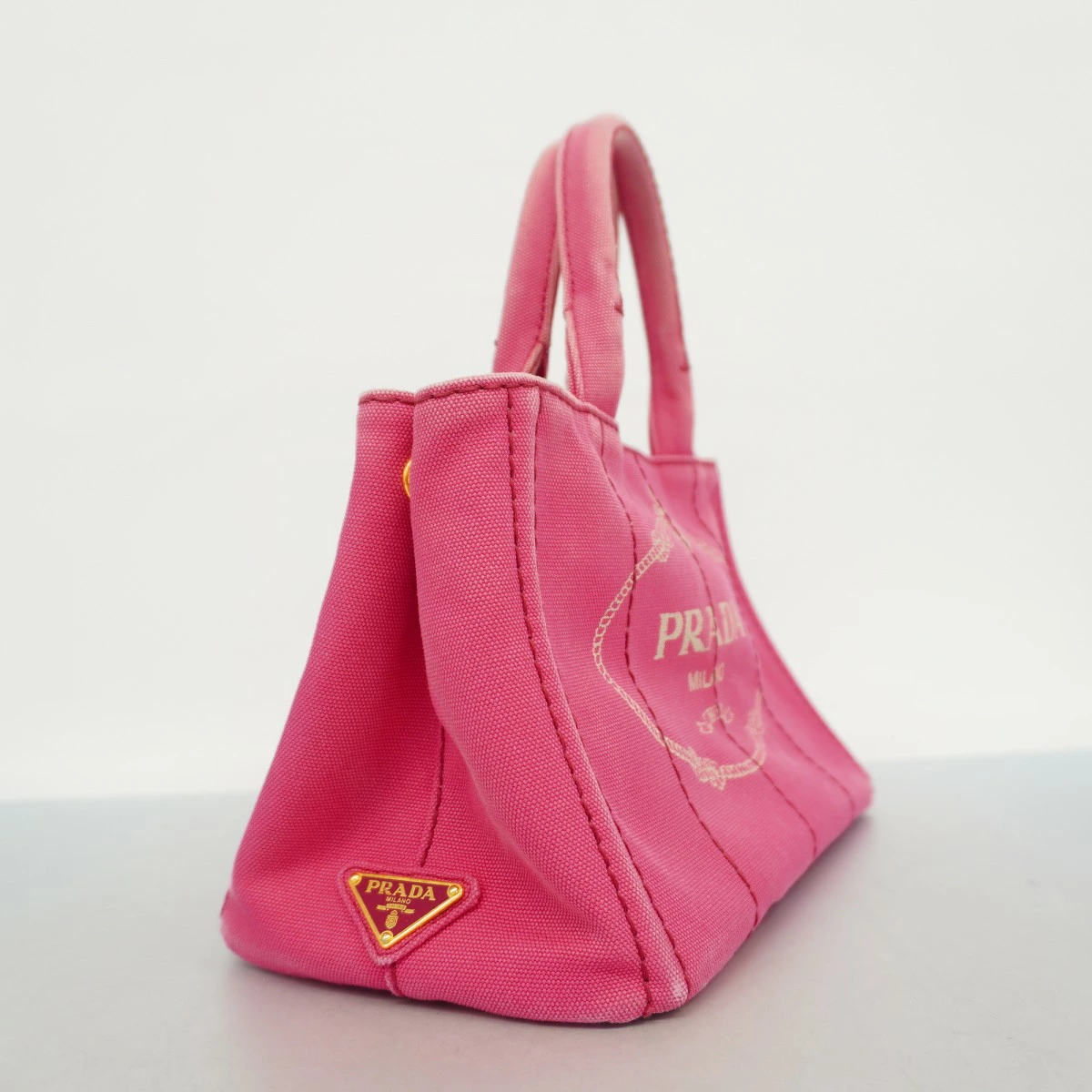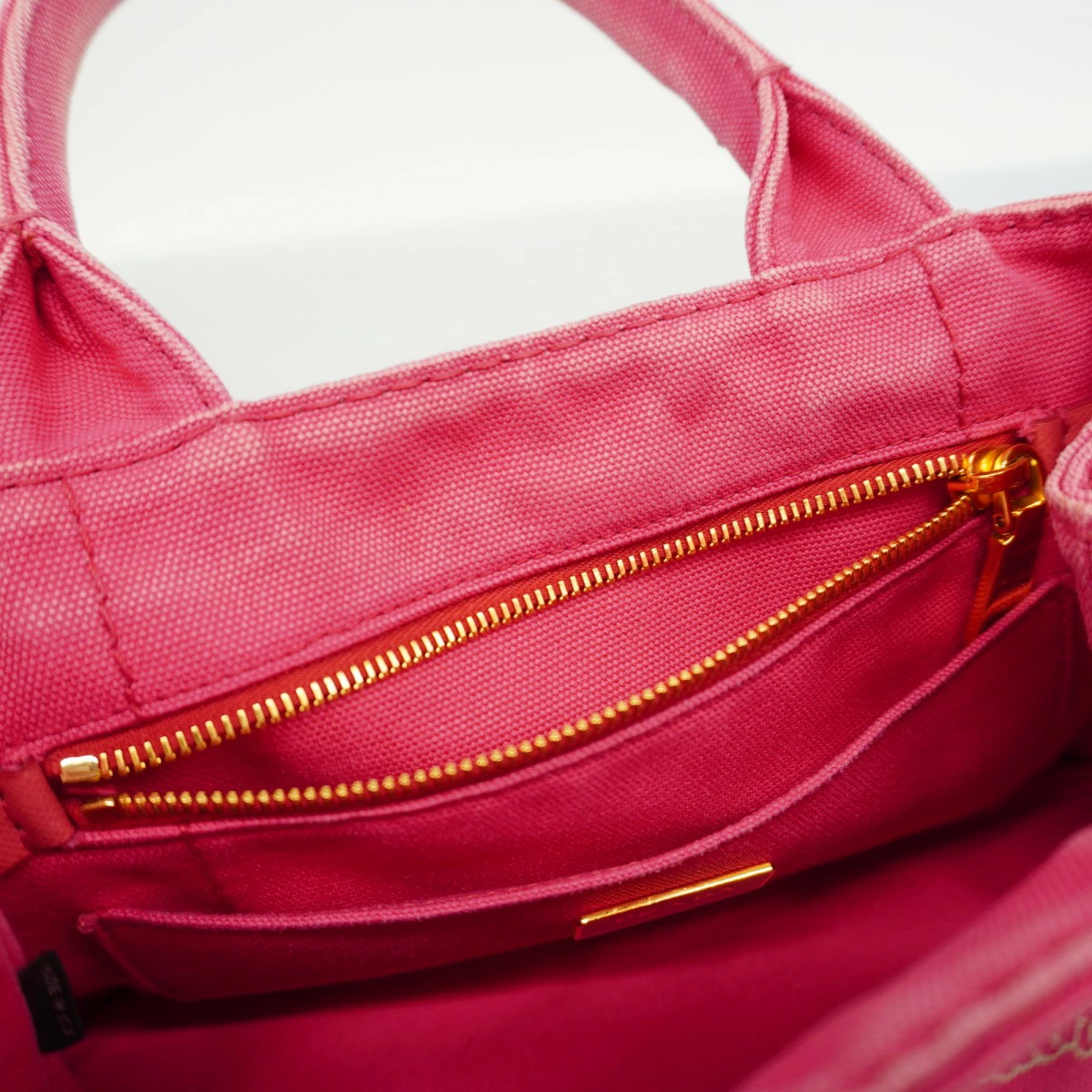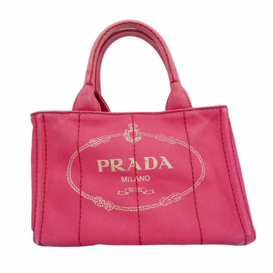 【5md4262】プラダ トートバッグ カナパ キャンバス ピンク ゴールド金具【中古】レディース