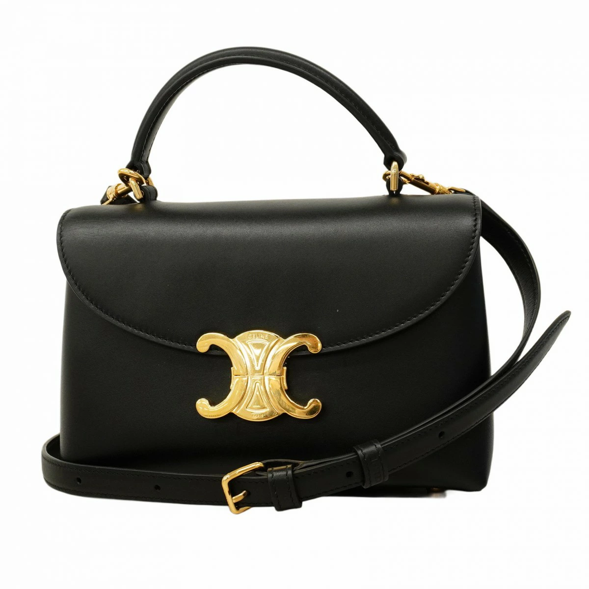 【5md4498-h】セリーヌ ハンドバッグ トリオンフ ティーンニノ レザー ブラック ゴールド金具 2wayバッグ【中古】レディース