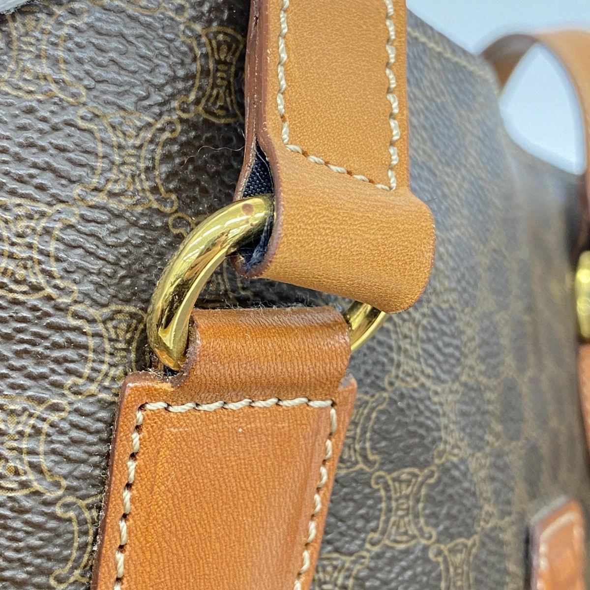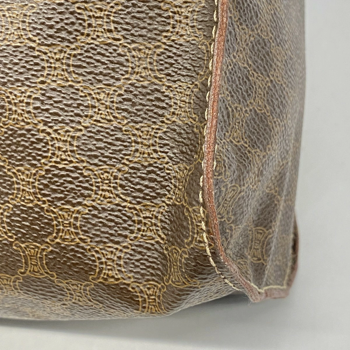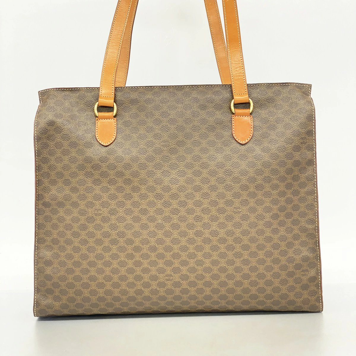 【5md4680】セリーヌ トートバッグ マカダム PVC ブラウン ゴールド金具【中古】レディース