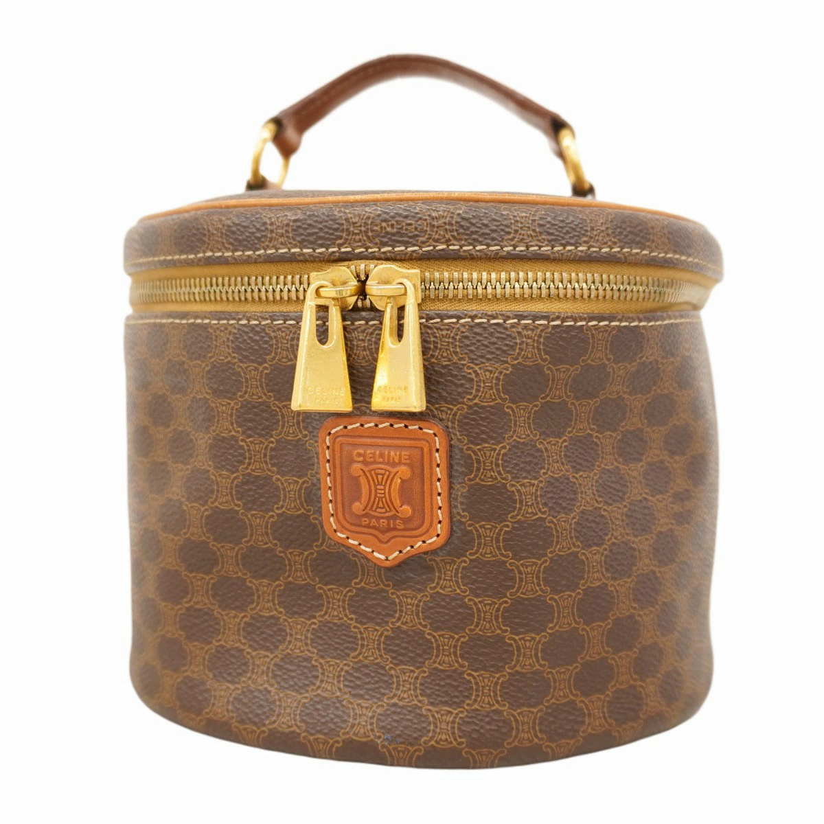 【5md4767】セリーヌ バニティバッグ マカダム PVC ブラウン ゴールド金具【中古】レディース
