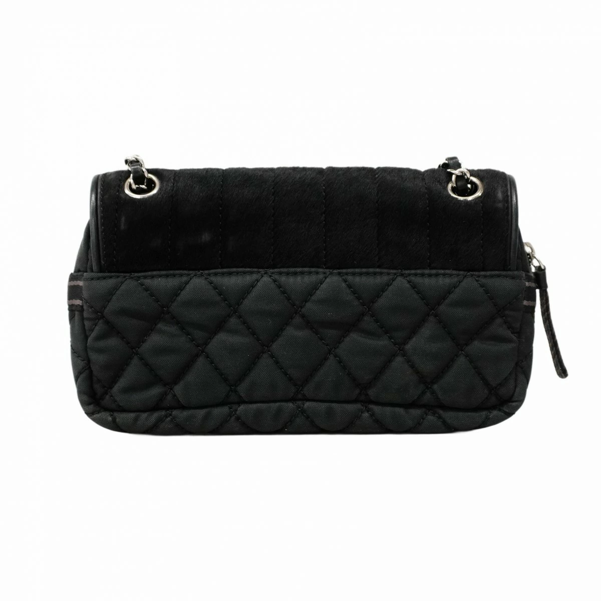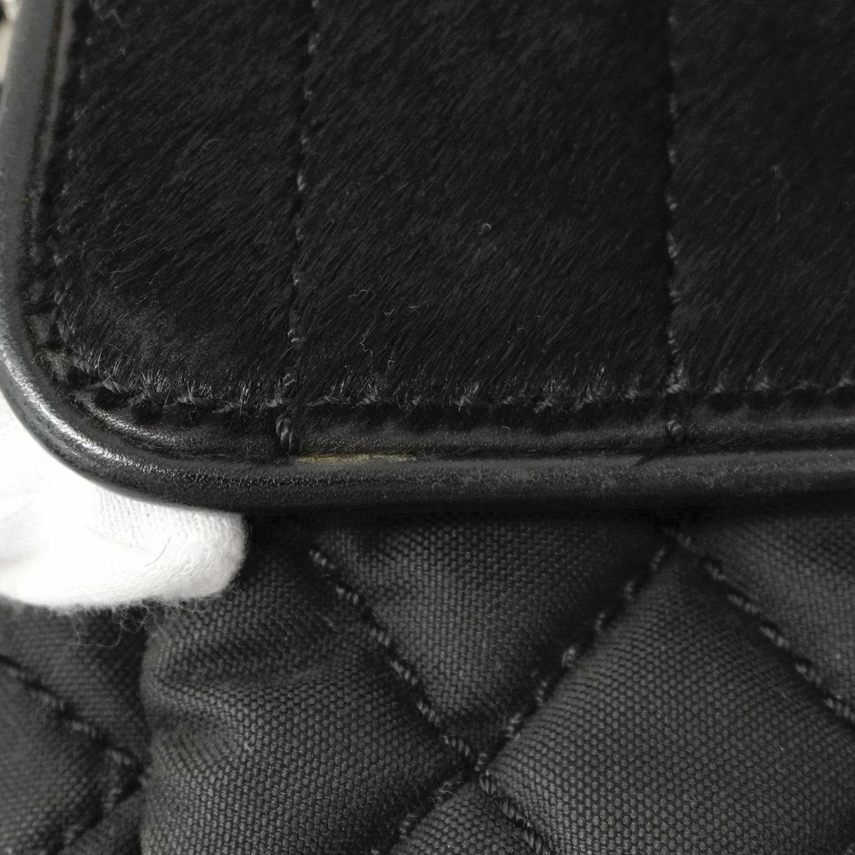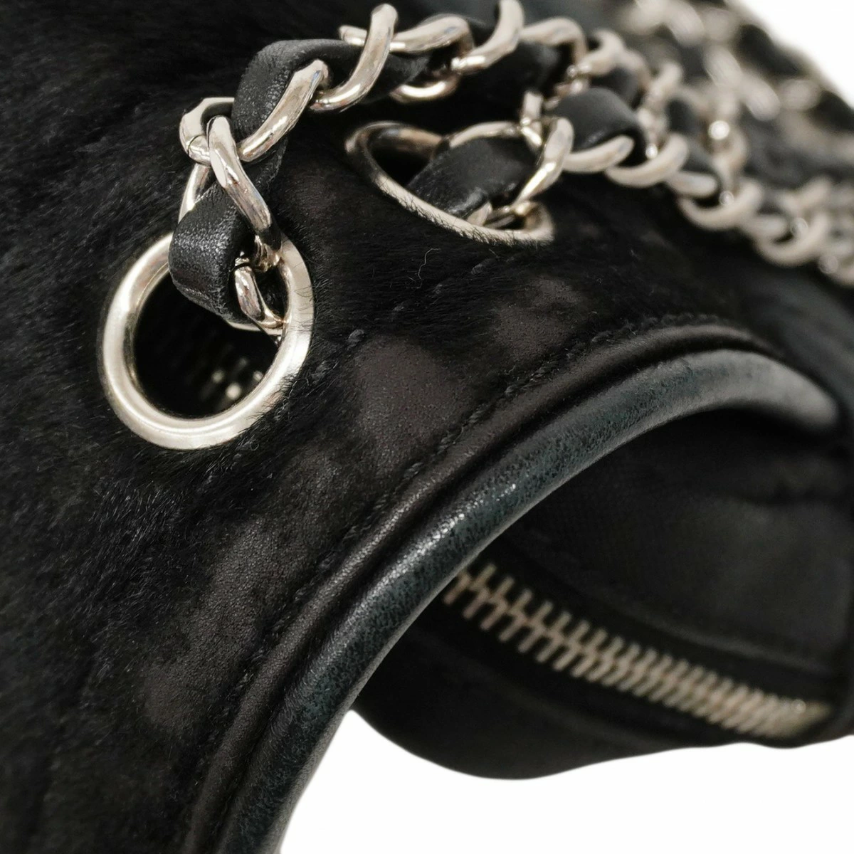 【5md4945-h】シャネル ショルダーバッグ スポーツ キャンバス ハラコ ブラック シルバー金具【中古】レディース