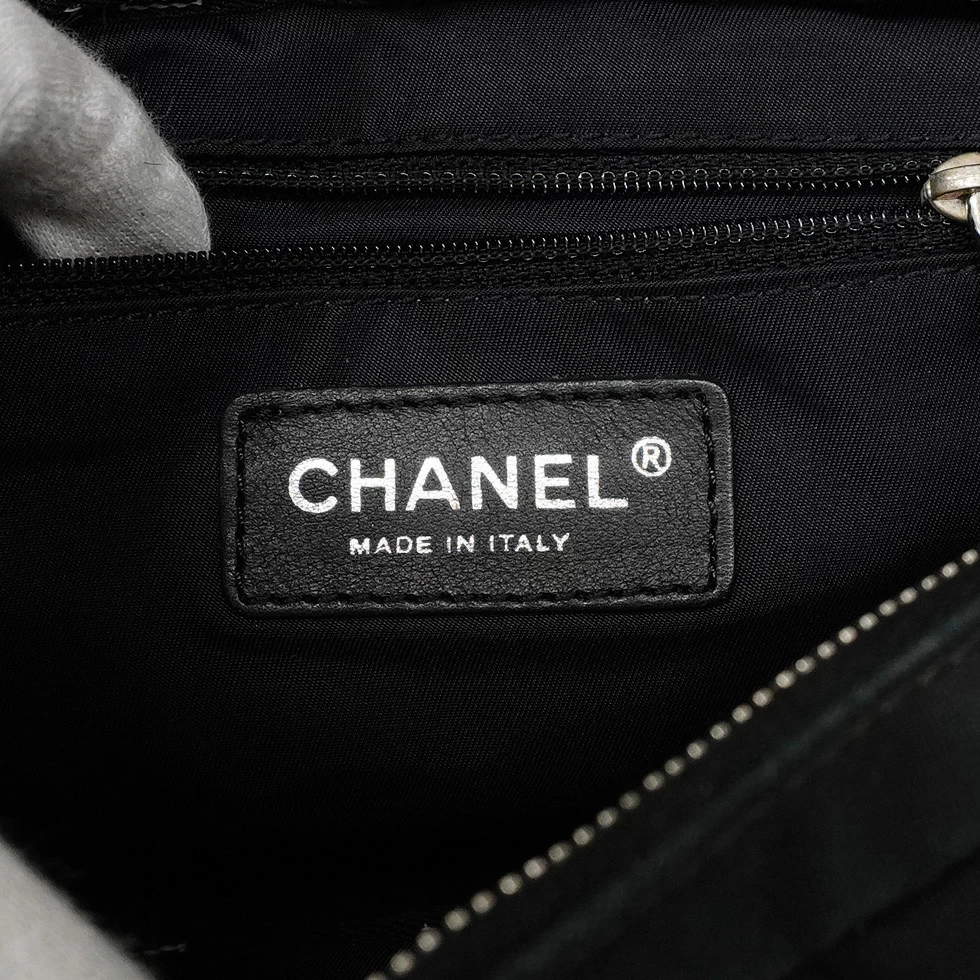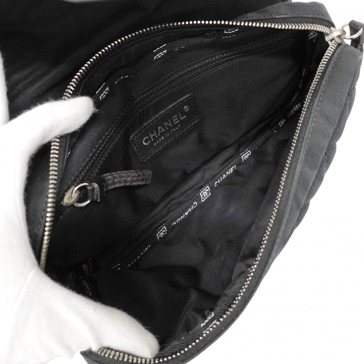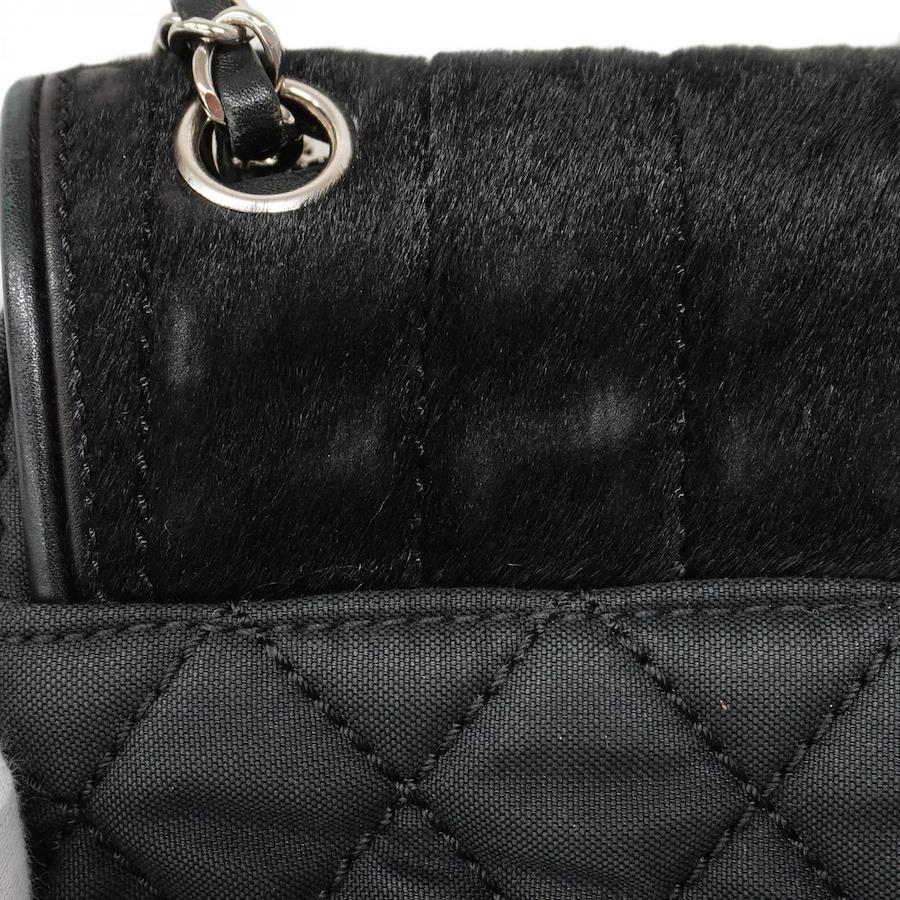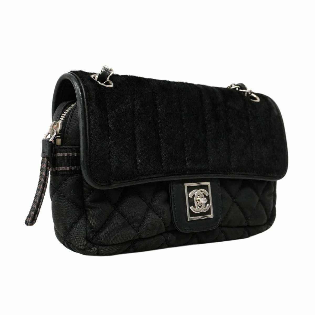 【5md4945-h】シャネル ショルダーバッグ スポーツ キャンバス ハラコ ブラック シルバー金具【中古】レディース