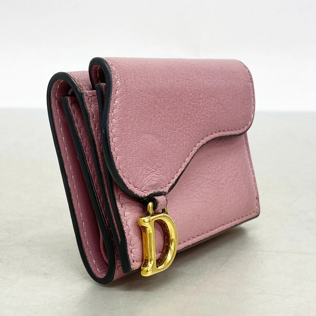 【5md5152】クリスチャンディオール 三つ折り財布 サドル レザー ピンク ゴールド金具【中古】レディース