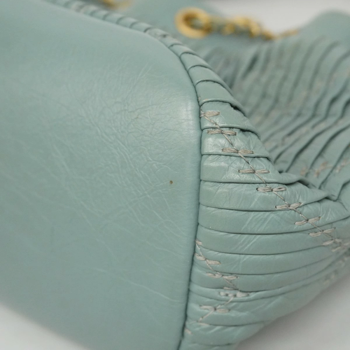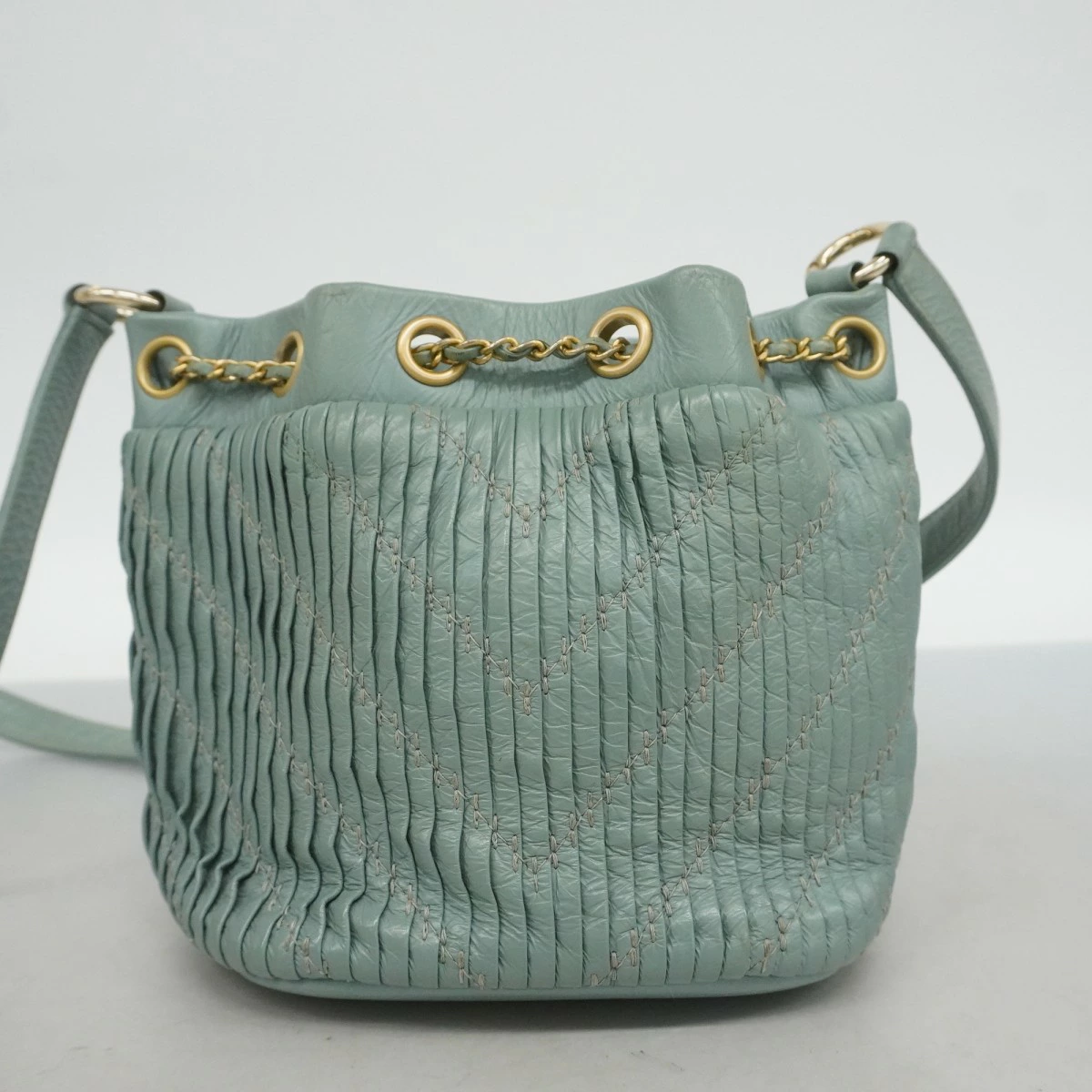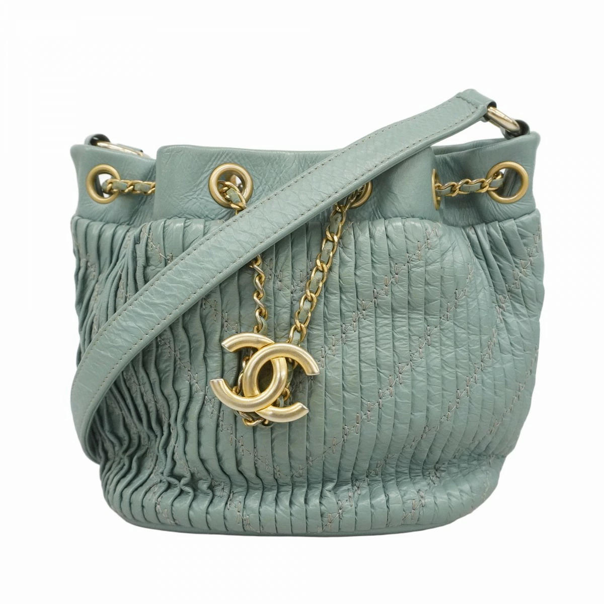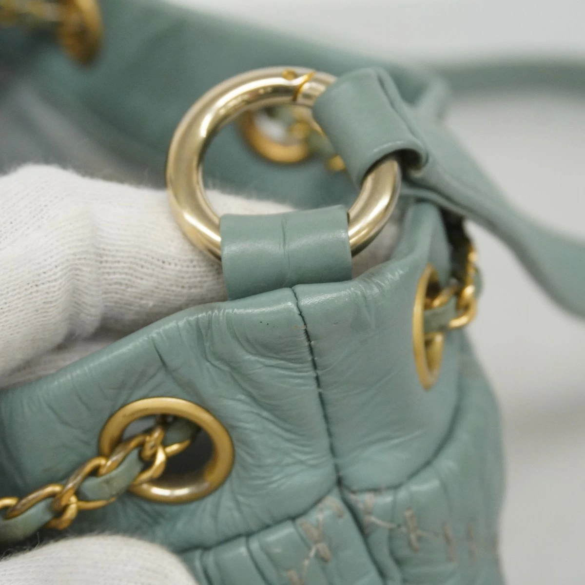 【5md5233-h】シャネル ショルダーバッグ Vステッチ レザー ブルー シャンパンゴールド金具【中古】レディース