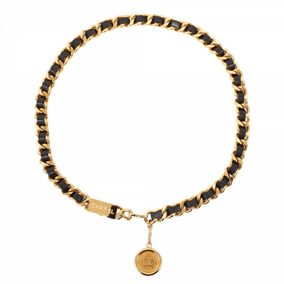 [5me5479] Chanel Belt, Gold/Black, Gold Hardware, Chain, Pre-owned, Women's