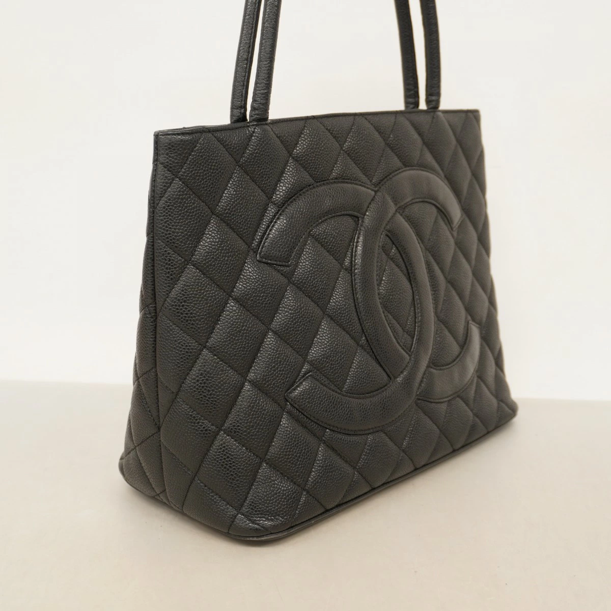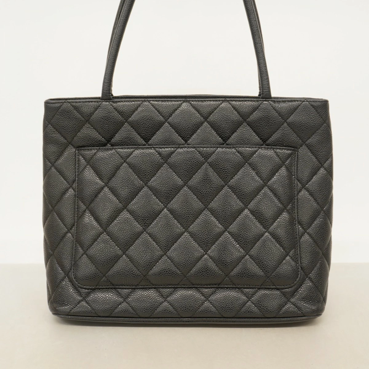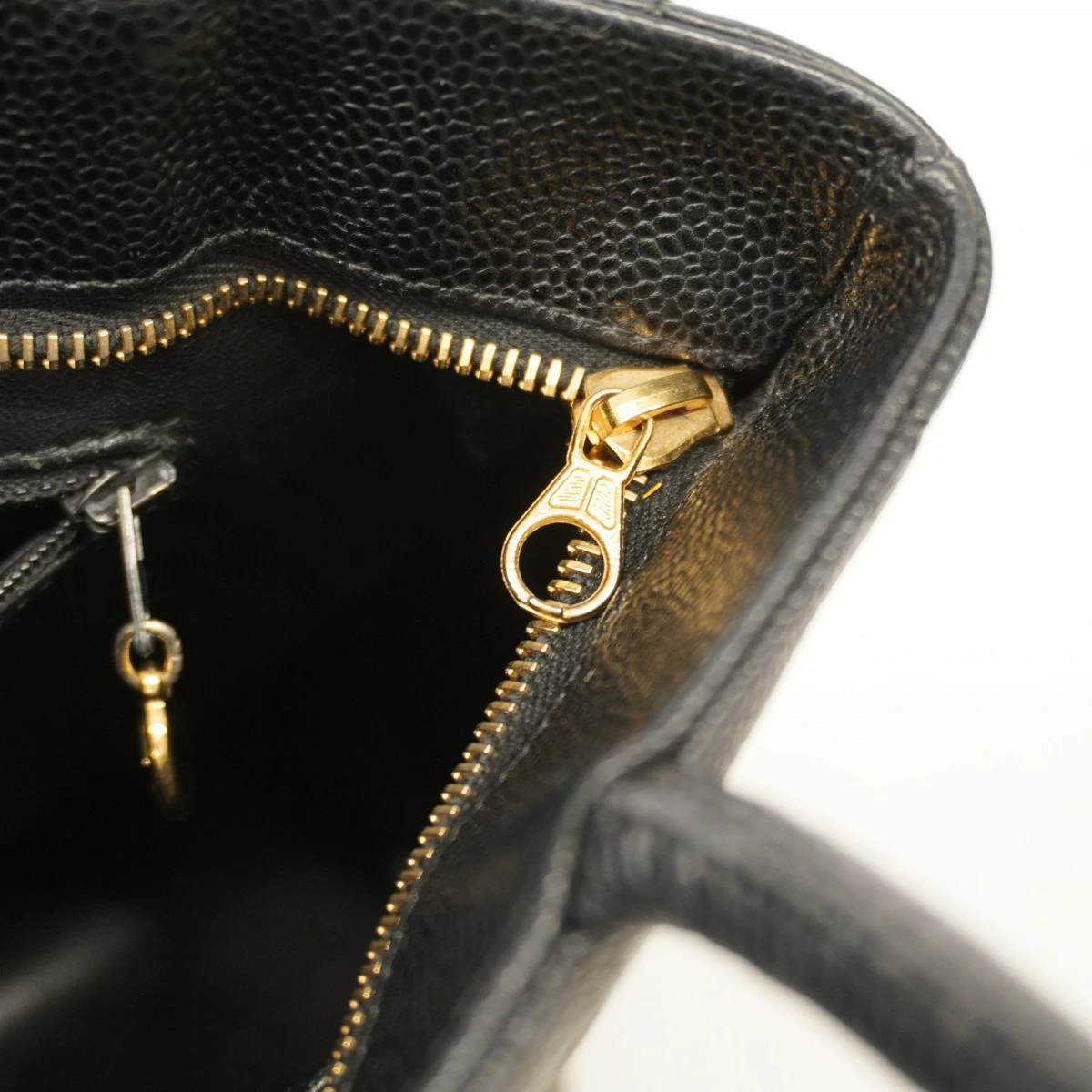 【5me5570-h】シャネル トートバッグトート キャビアスキン ブラック ゴールド金具【中古】レディース