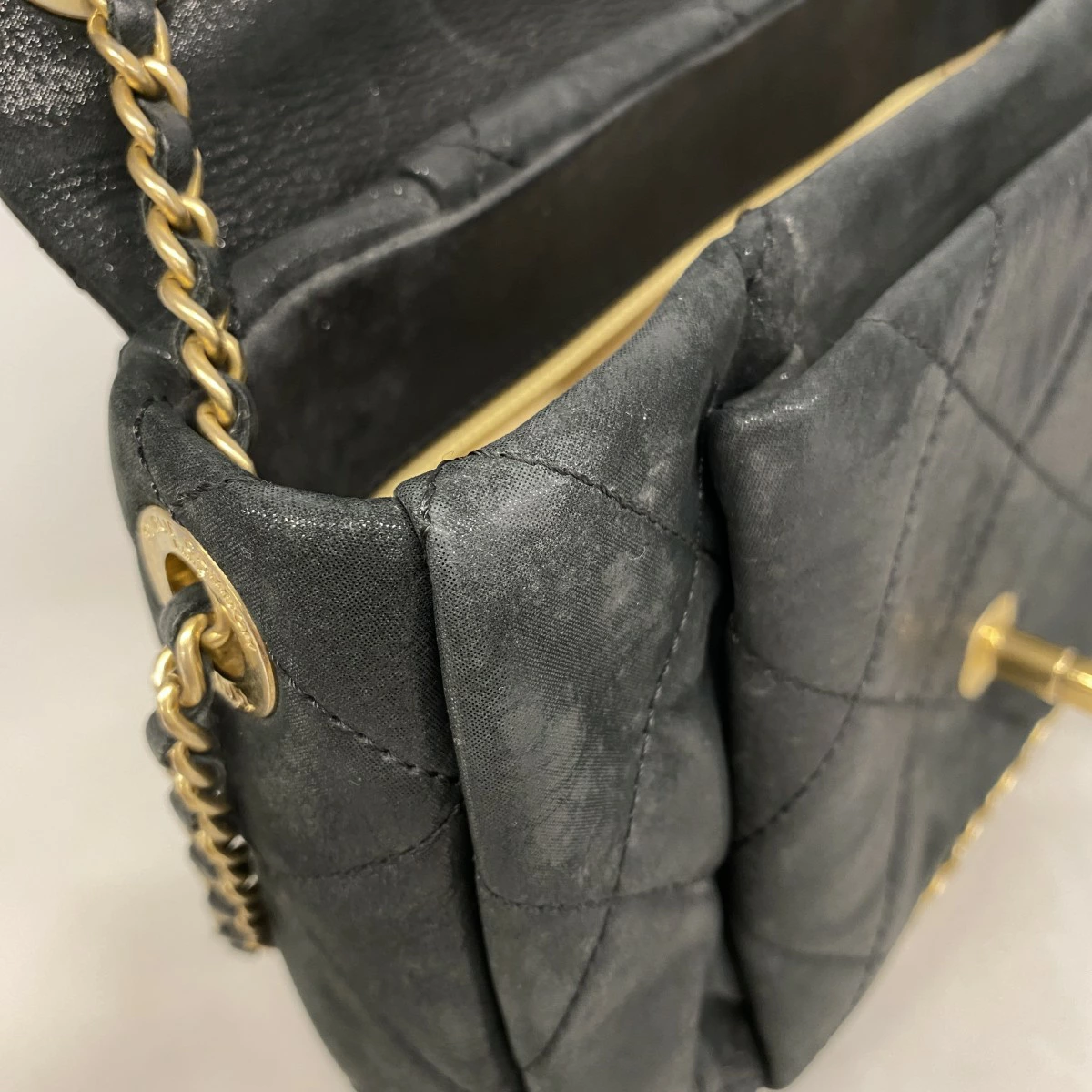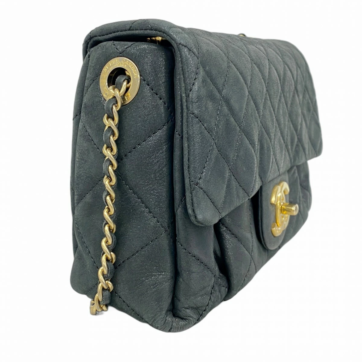 【5me5724-h】シャネル ショルダーバッグ マトラッセ Wチェーン レザー ブラック ゴールド金具【中古】レディース