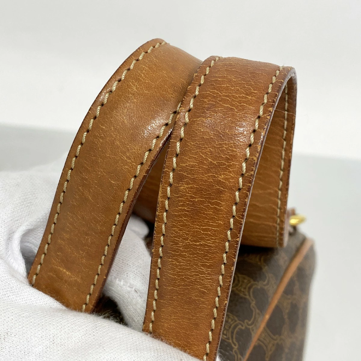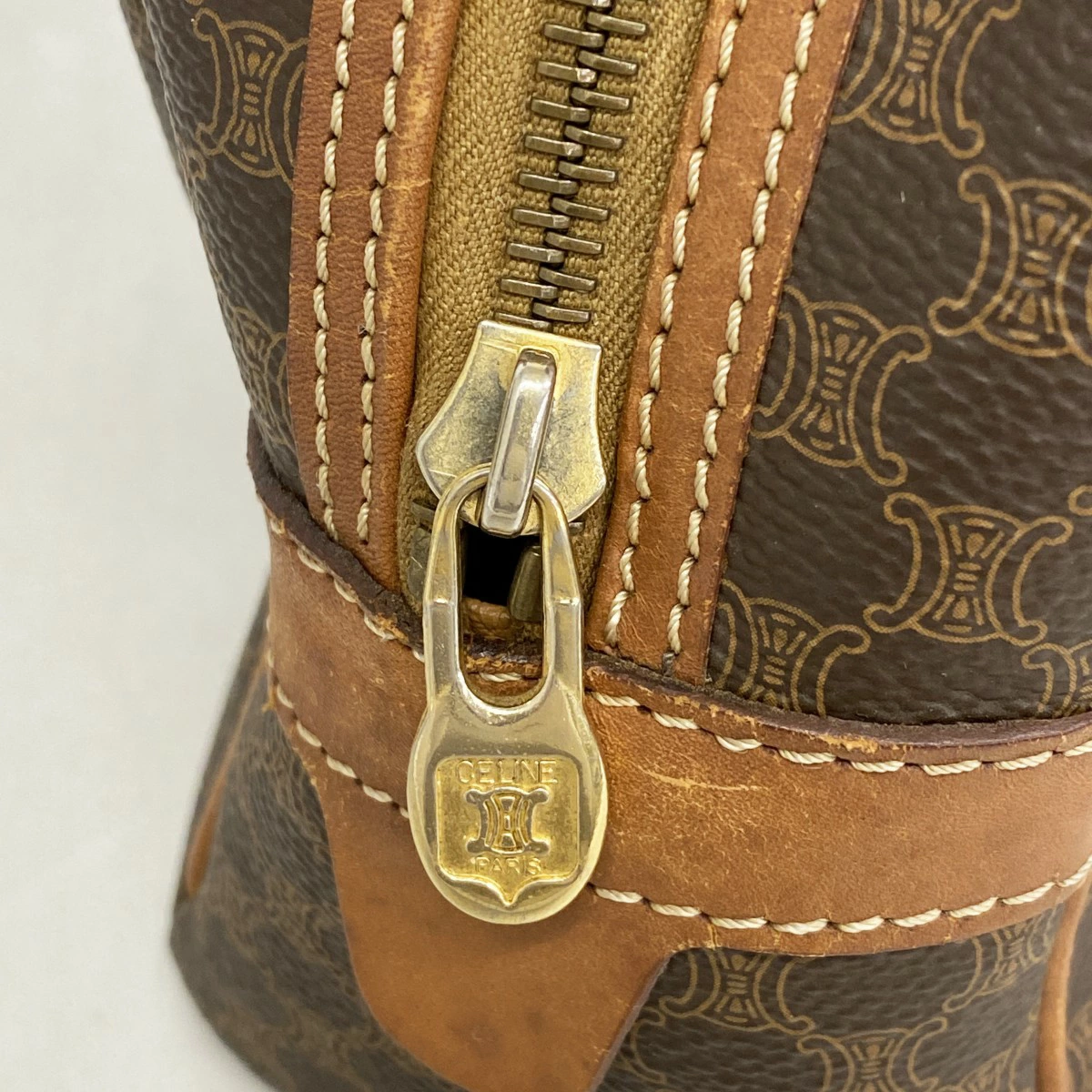 【5me5806】セリーヌ ハンドバッグ マカダム PVC ブラウン ゴールド金具【中古】レディース