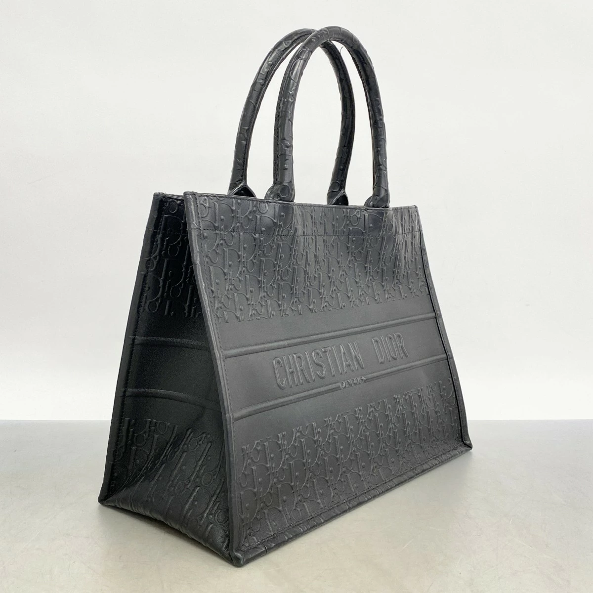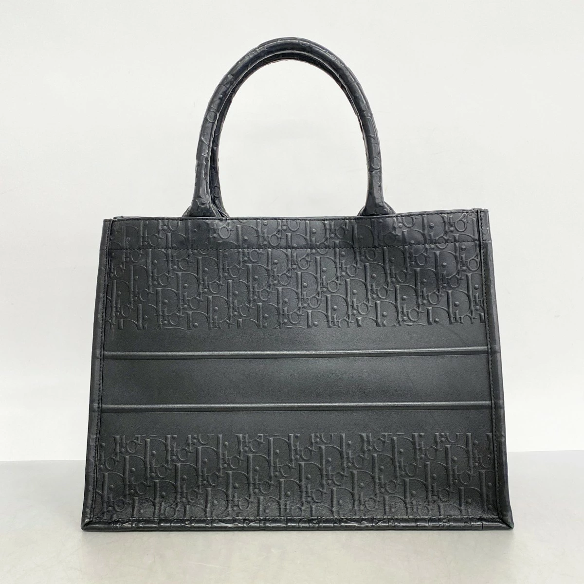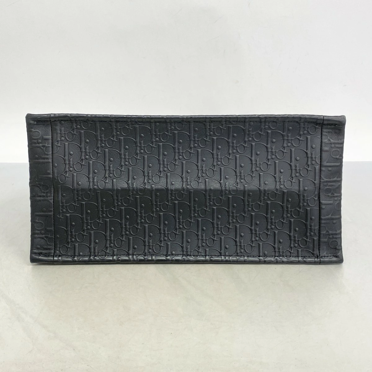 [5me5821-h] Christian Dior Oblique Book Tote Bag, Leather, Black, Pre-owned, Women's
