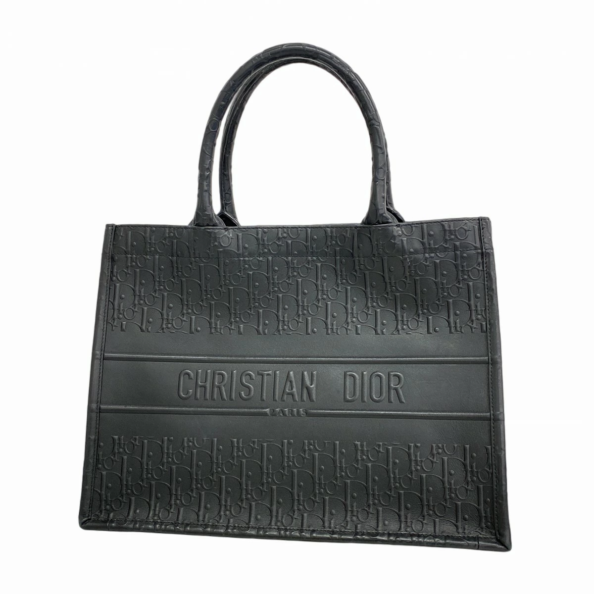 【5me5821-h】クリスチャンディオール トートバッグ オブリーク ブックトート レザー ブラック【中古】レディース