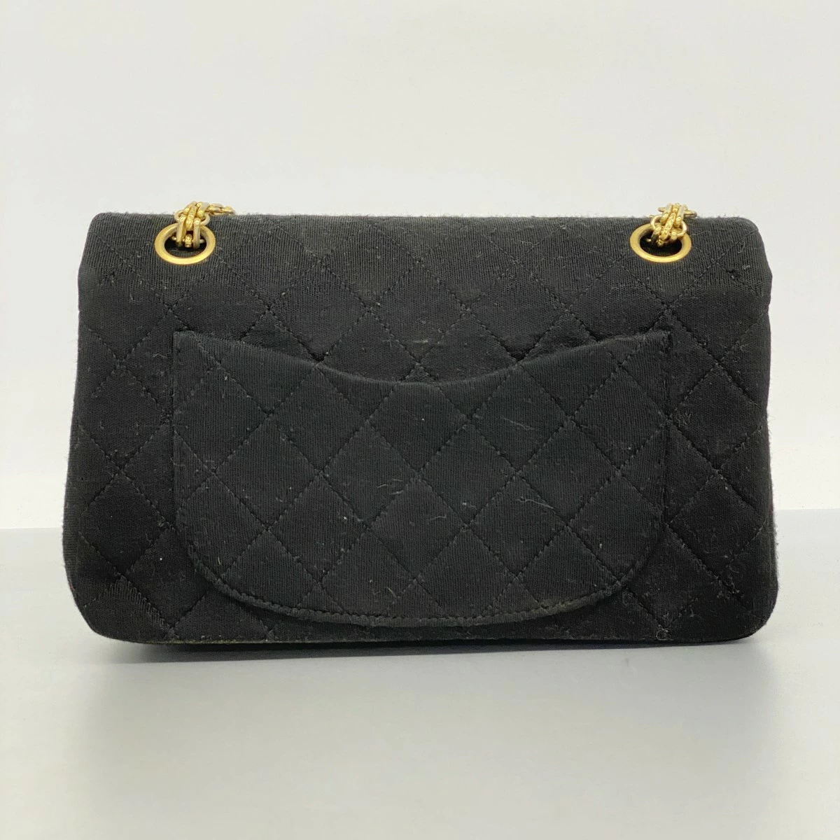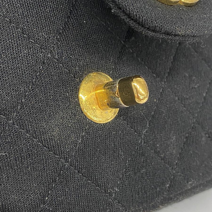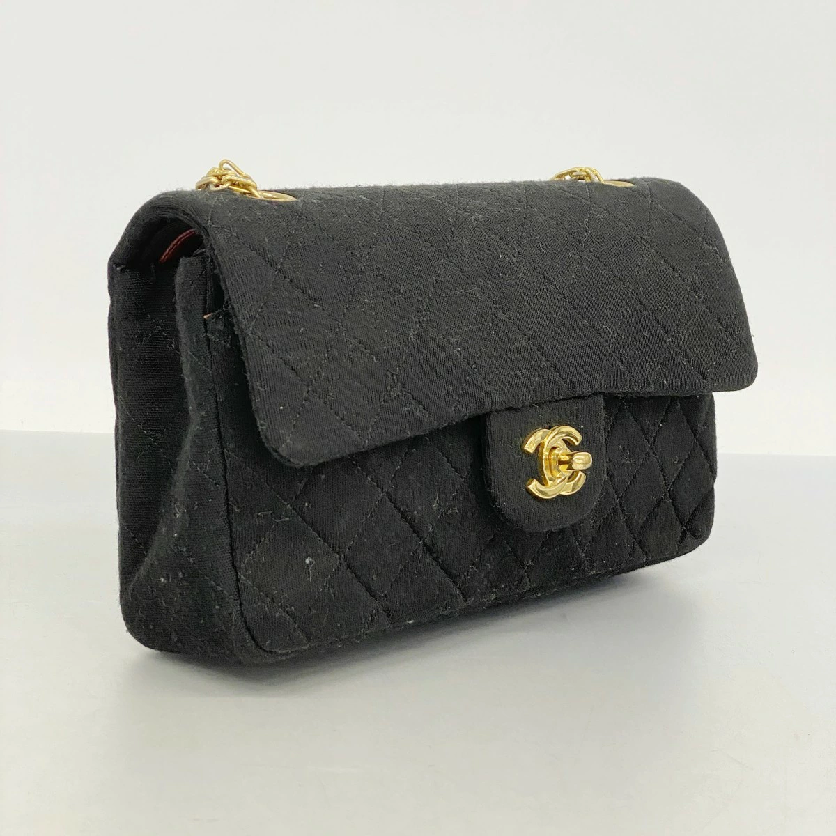 [5me5871-h] Chanel Matelasse Shoulder Bag, Double Flap, Double Chain, Cotton, Black, Gold Hardware, Pre-owned, Women's