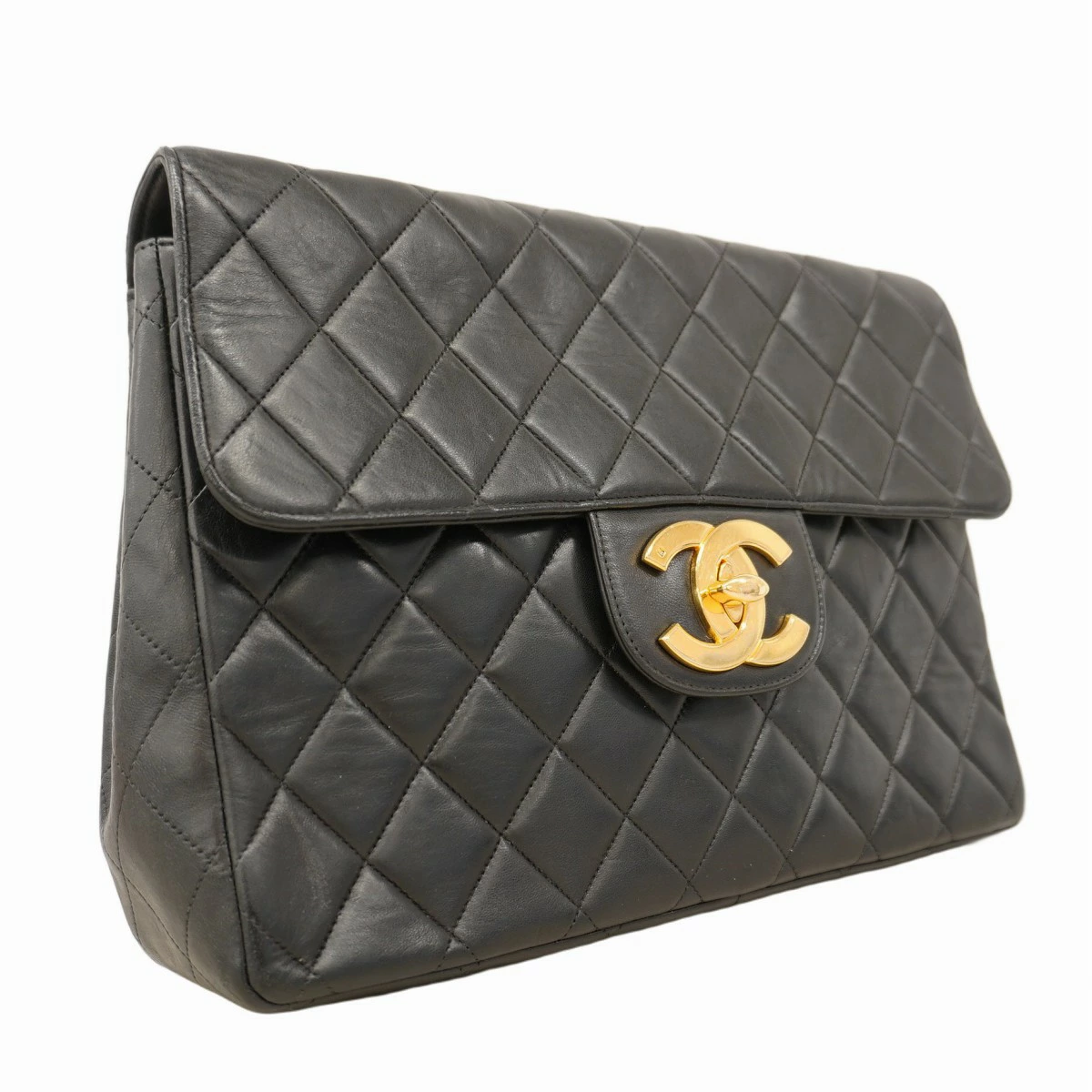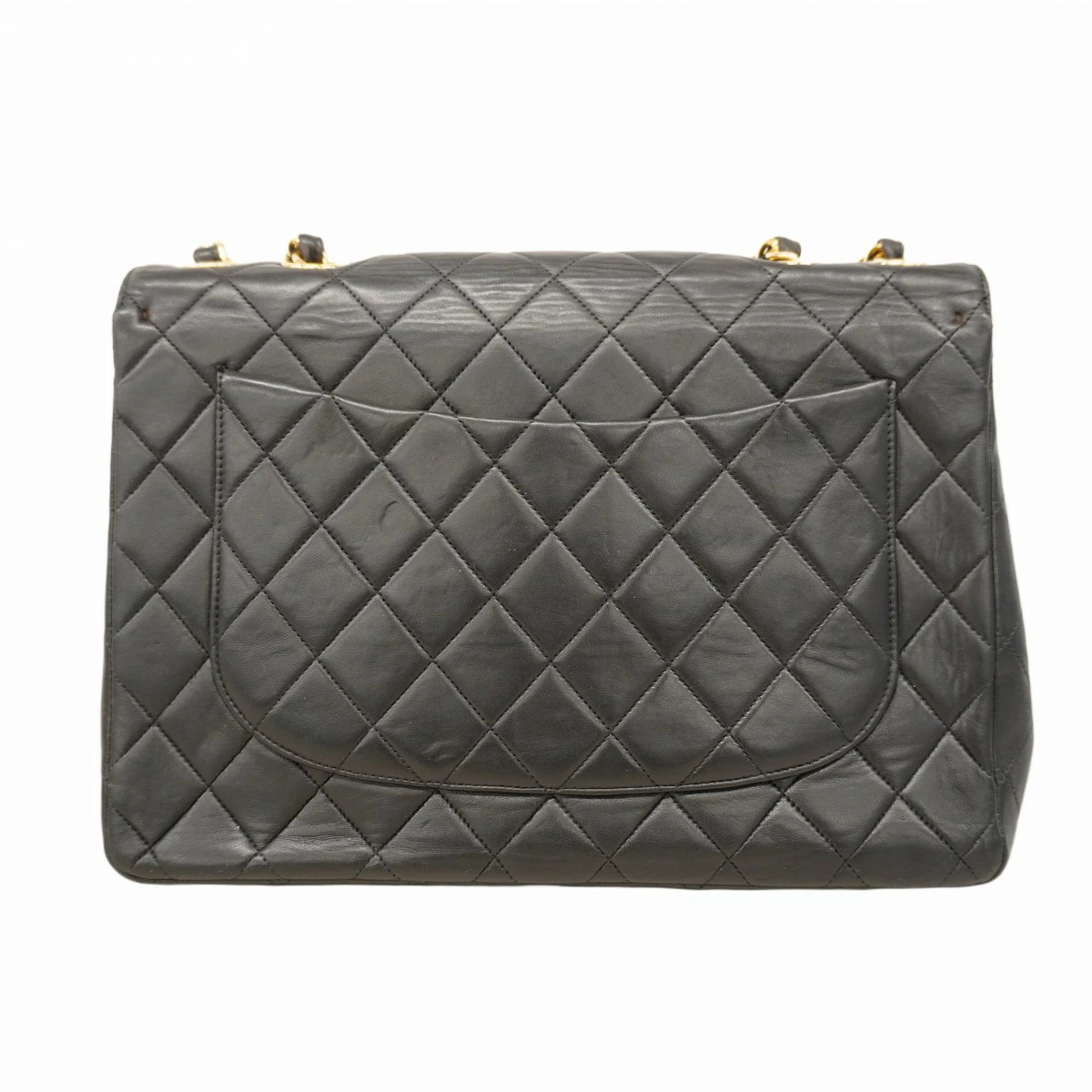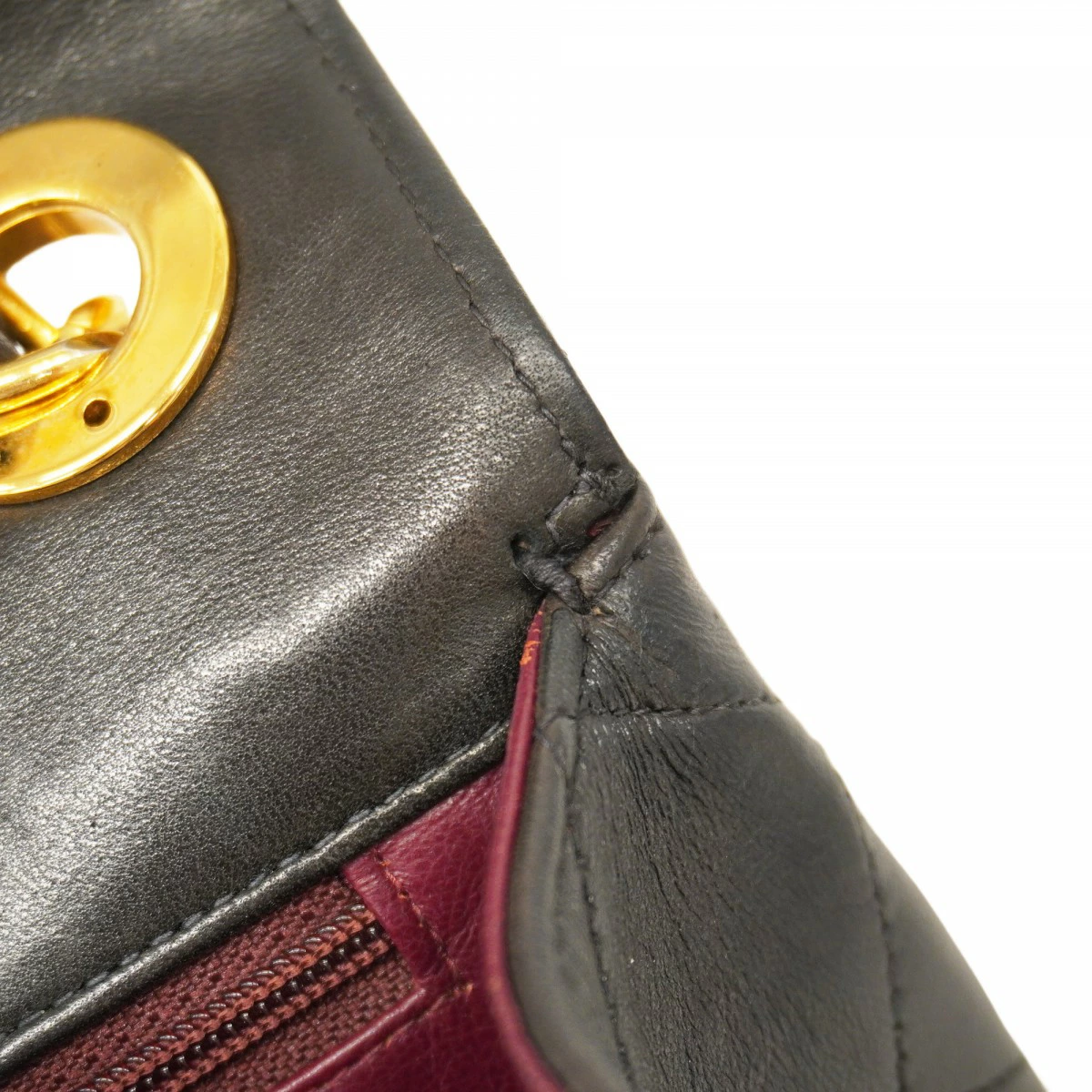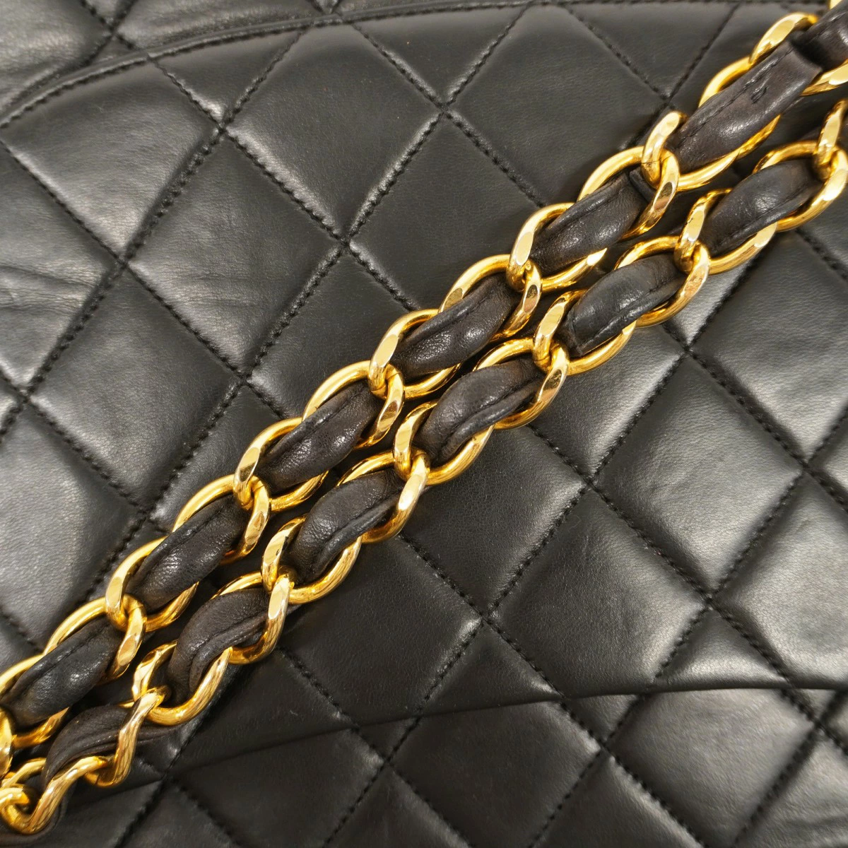 ★SALE【5me6012-h】シャネル ショルダーバッグ マトラッセ Wチェーン ラムスキン ブラック ゴールド金具【中古】レディース