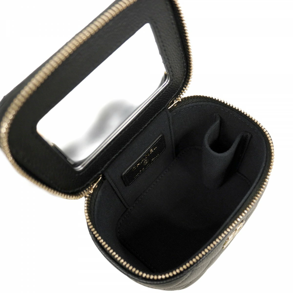 【5me6108-h】シャネル バニティバッグ マトラッセ チェーンショルダー キャビアスキン ブラック シャンパンゴールド金具【中古】レディース