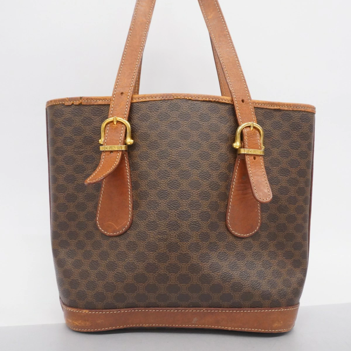 【5me6266】セリーヌ トートバッグ マカダム PVC ブラウン ゴールド金具【中古】レディース