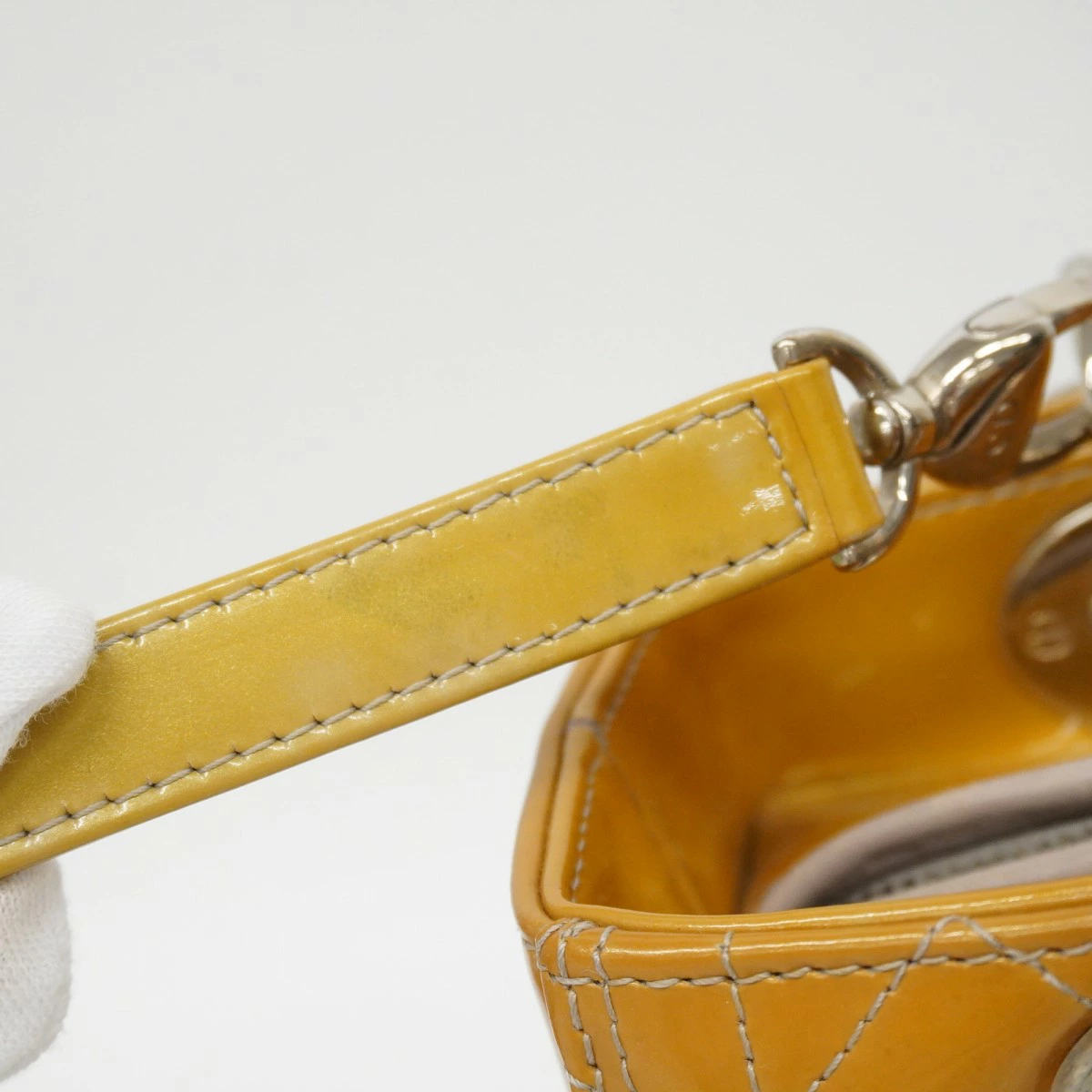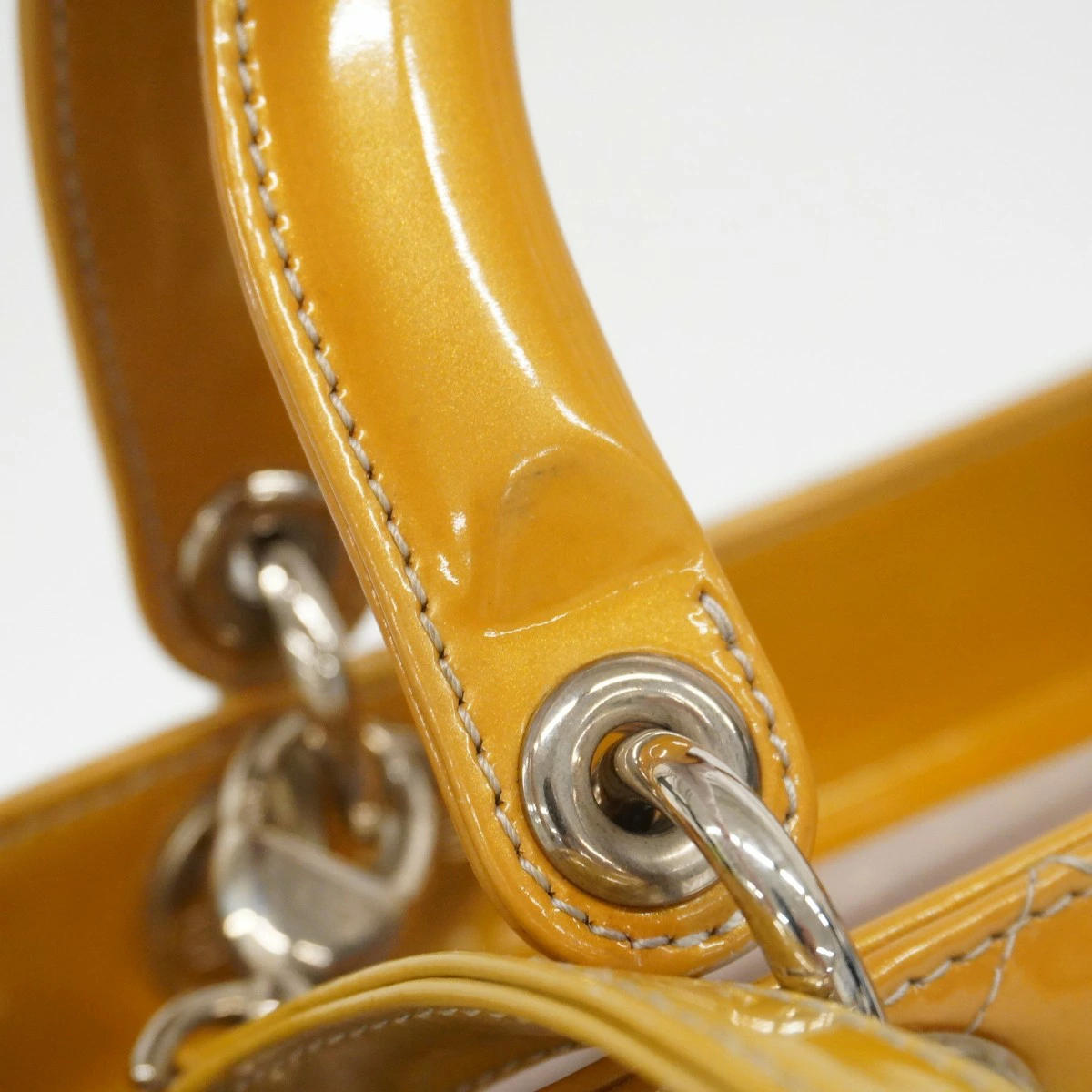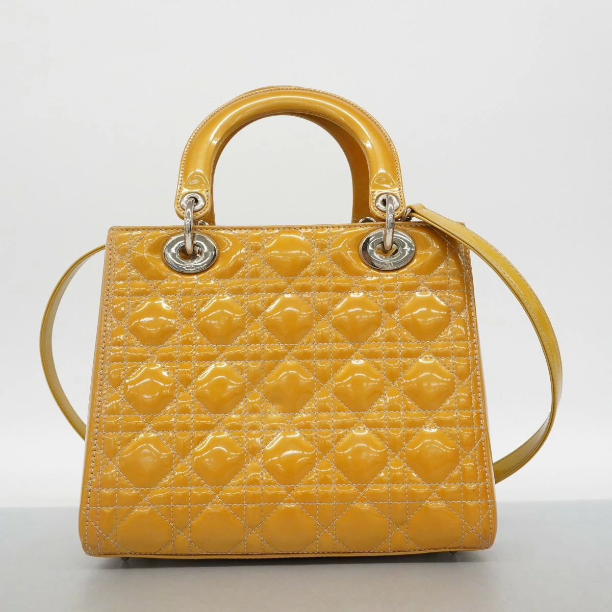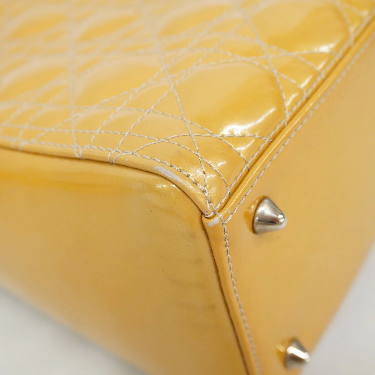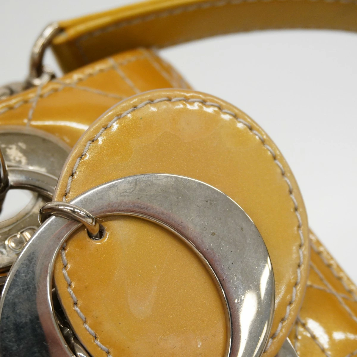 【5me6522】クリスチャンディオール ハンドバッグ カナージュ レディディオール エナメル ベージュ シルバー金具 2wayバッグ【中古】レディース