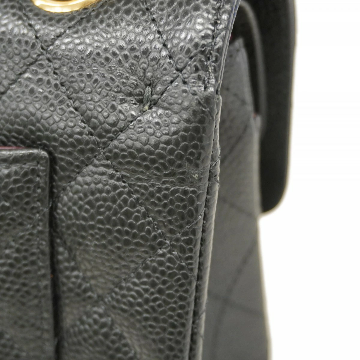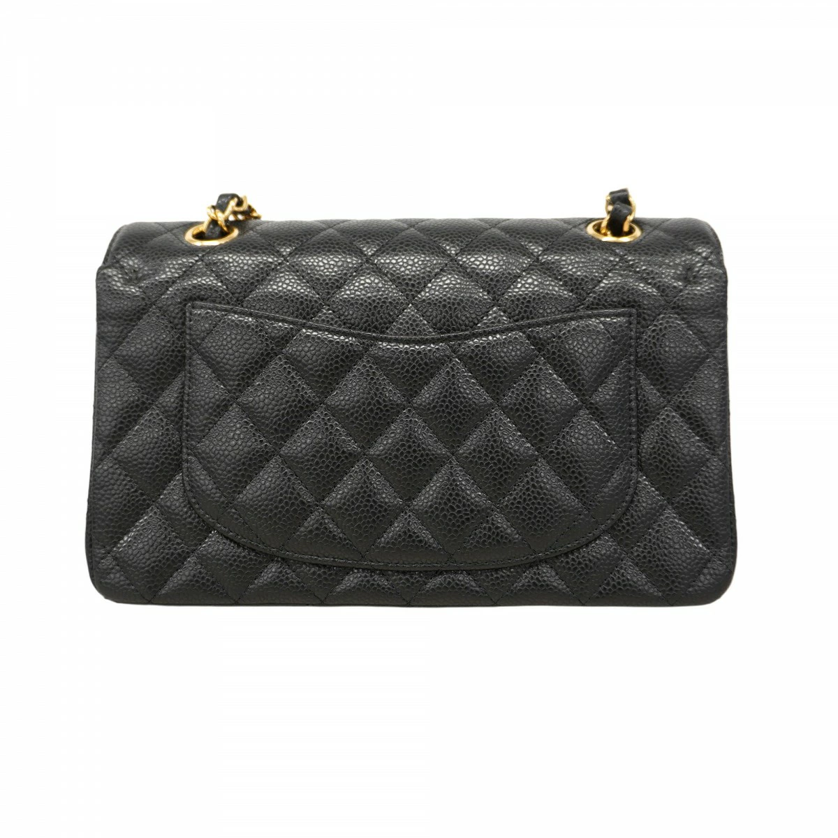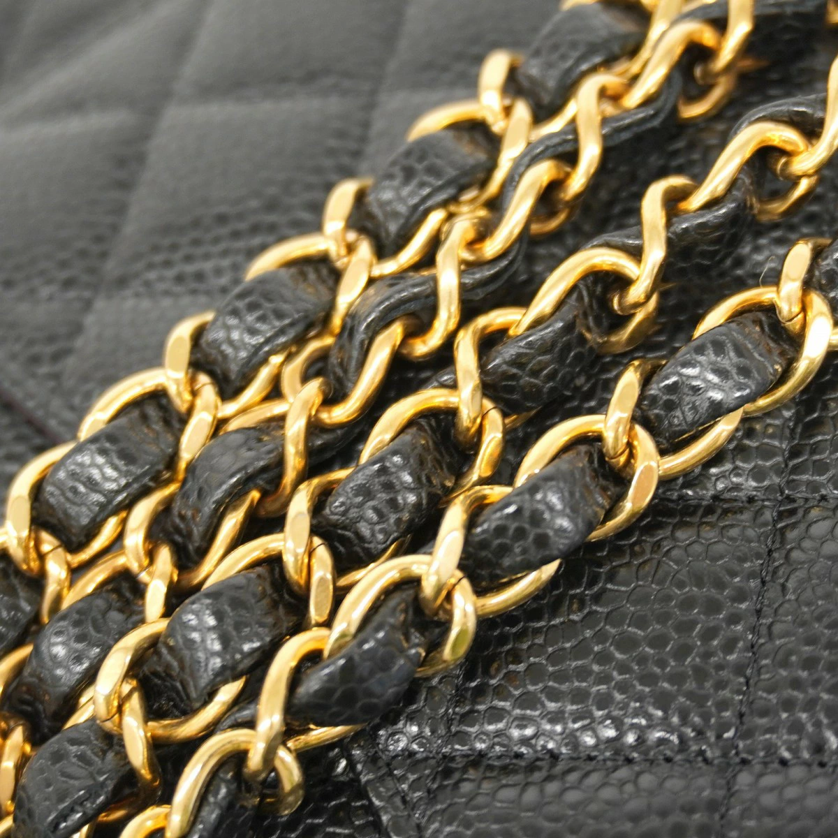 ★最終価格★SALE【5me6607-h】シャネル ショルダーバッグ マトラッセ Wフラップ Wチェーン キャビアスキン ブラック ゴールド金具【中古】レディース