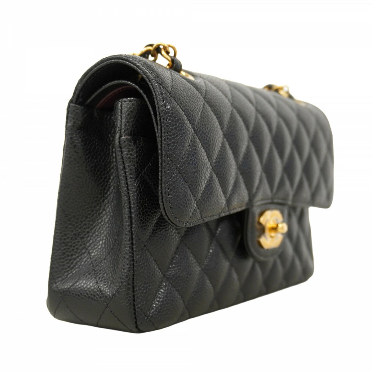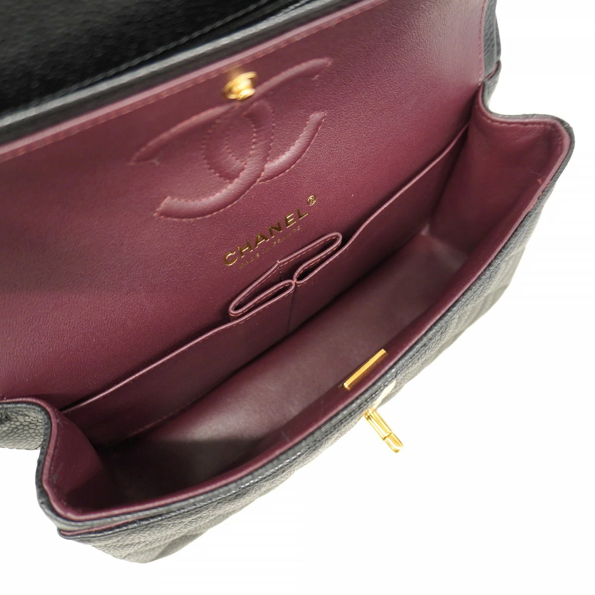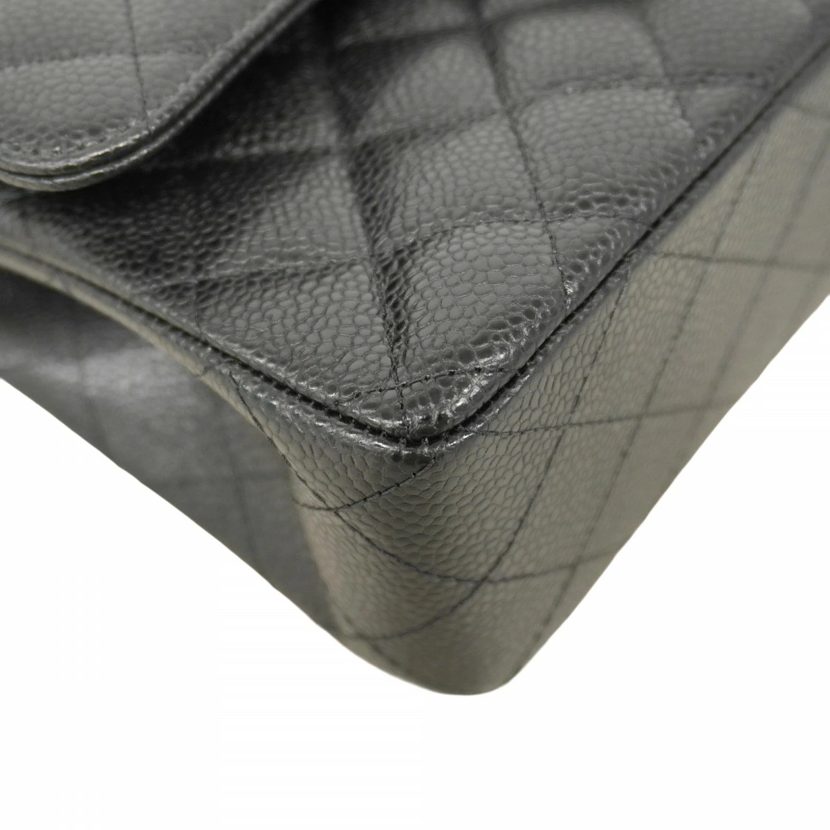 ★最終価格★SALE【5me6607-h】シャネル ショルダーバッグ マトラッセ Wフラップ Wチェーン キャビアスキン ブラック ゴールド金具【中古】レディース