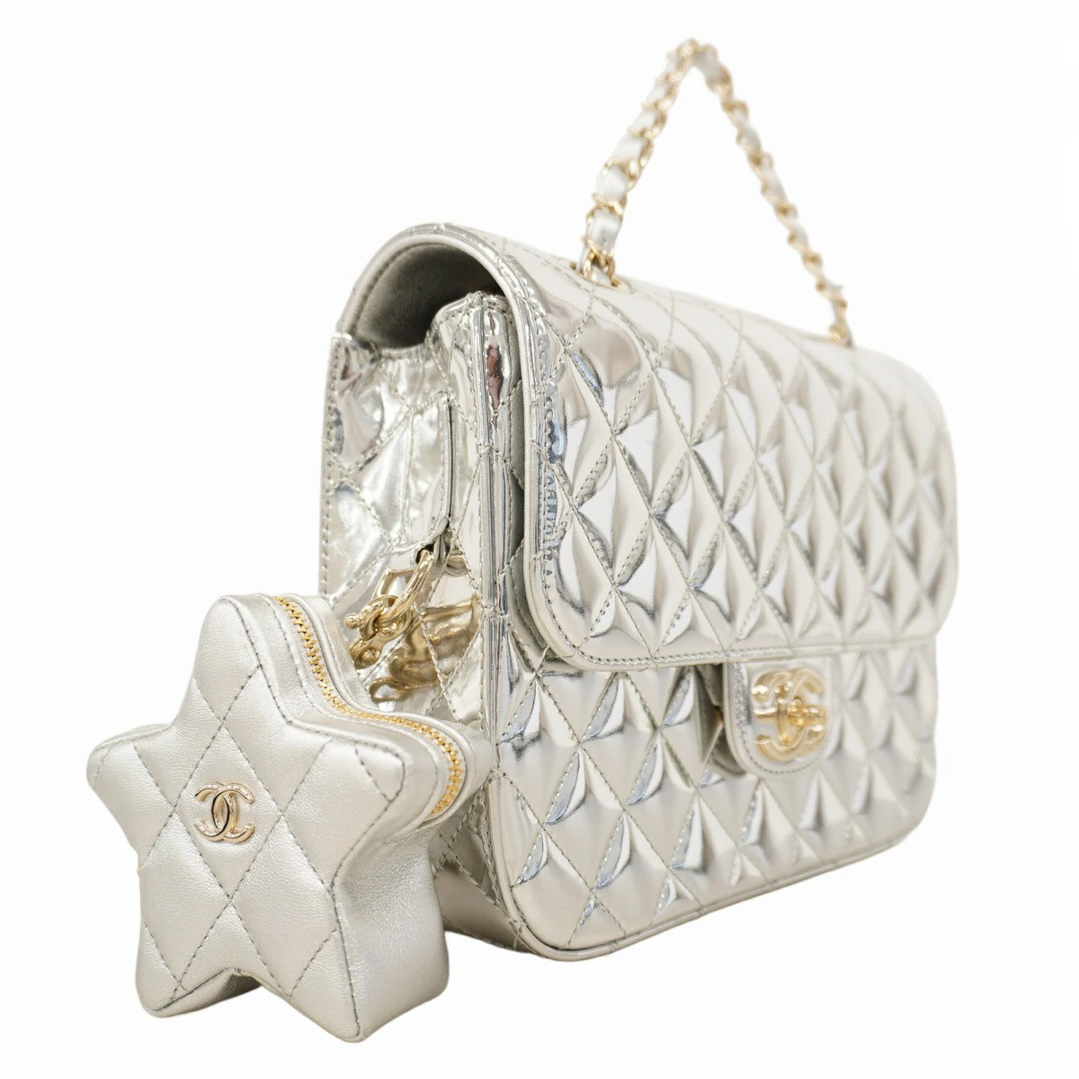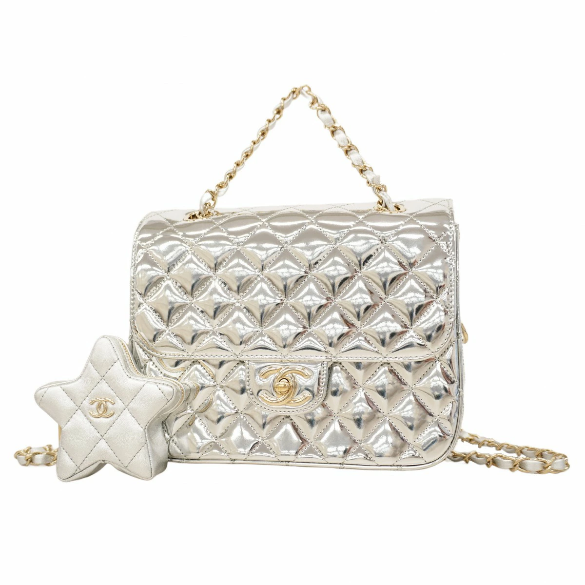 ★最終価格★SALE【5ob0003-h】シャネル リュック・デイパック マトラッセ チェーン パテントレザー シルバー シャンパンゴールド金具【中古】レディース