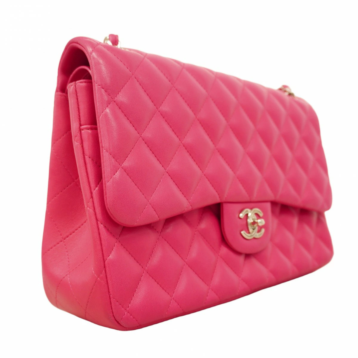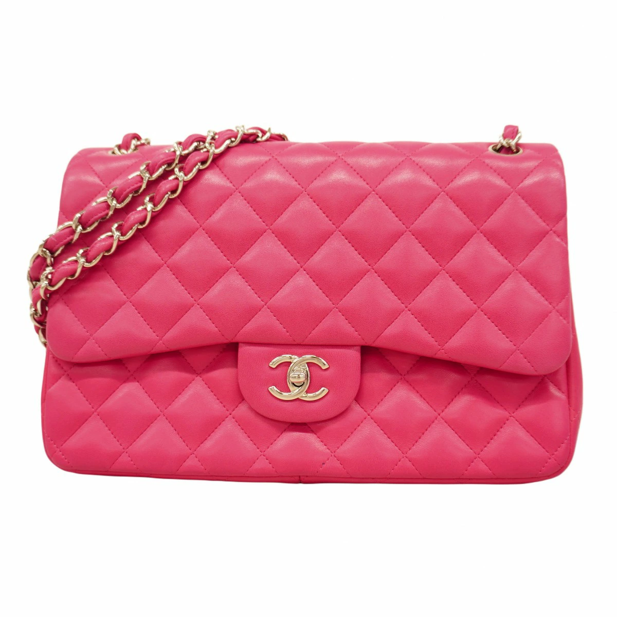 ★最終価格★SALE【5ob0359-h】シャネル ショルダーバッグ デカマトラッセ Wフラップ Wチェーン ラムスキン ピンク シルバー金具【中古】レディース