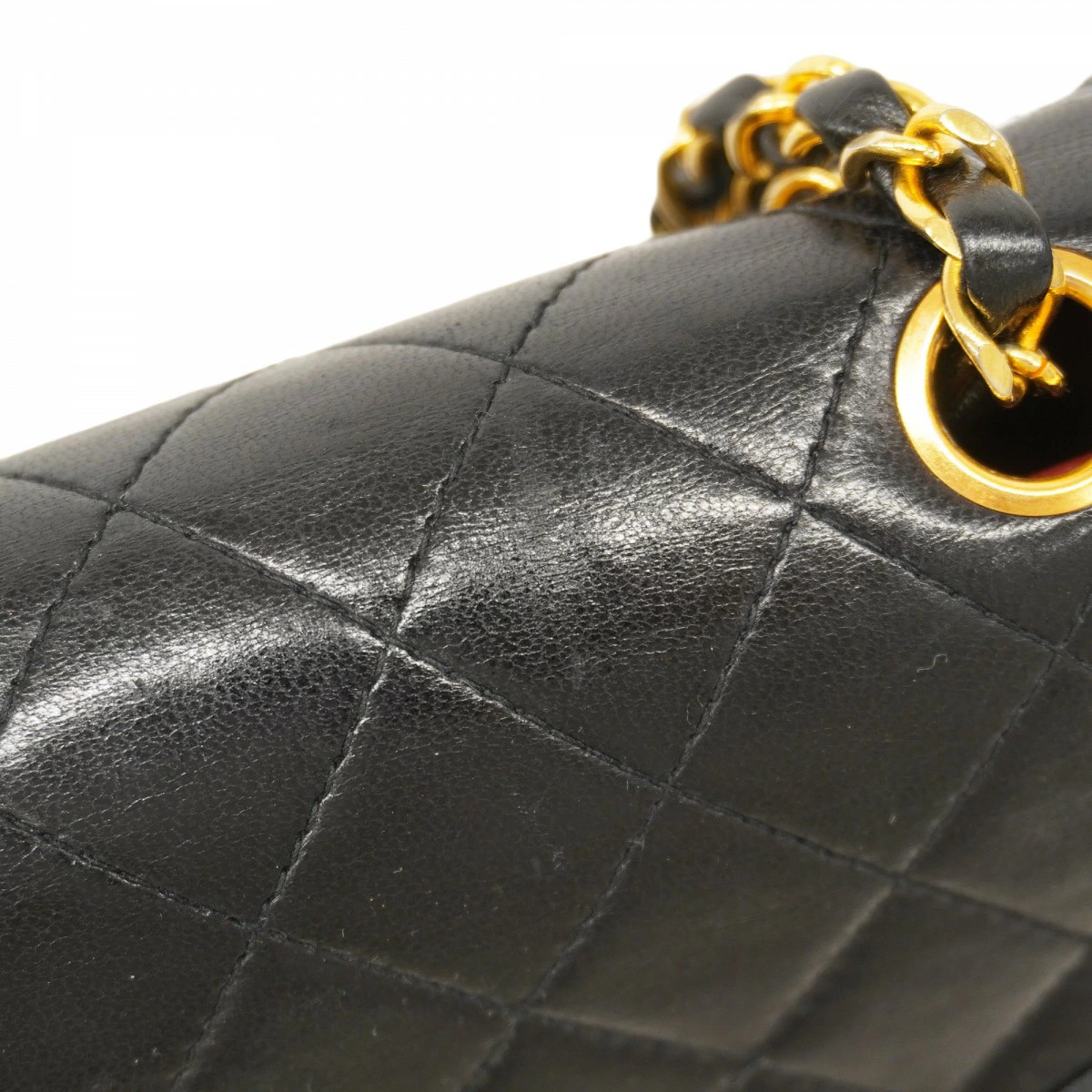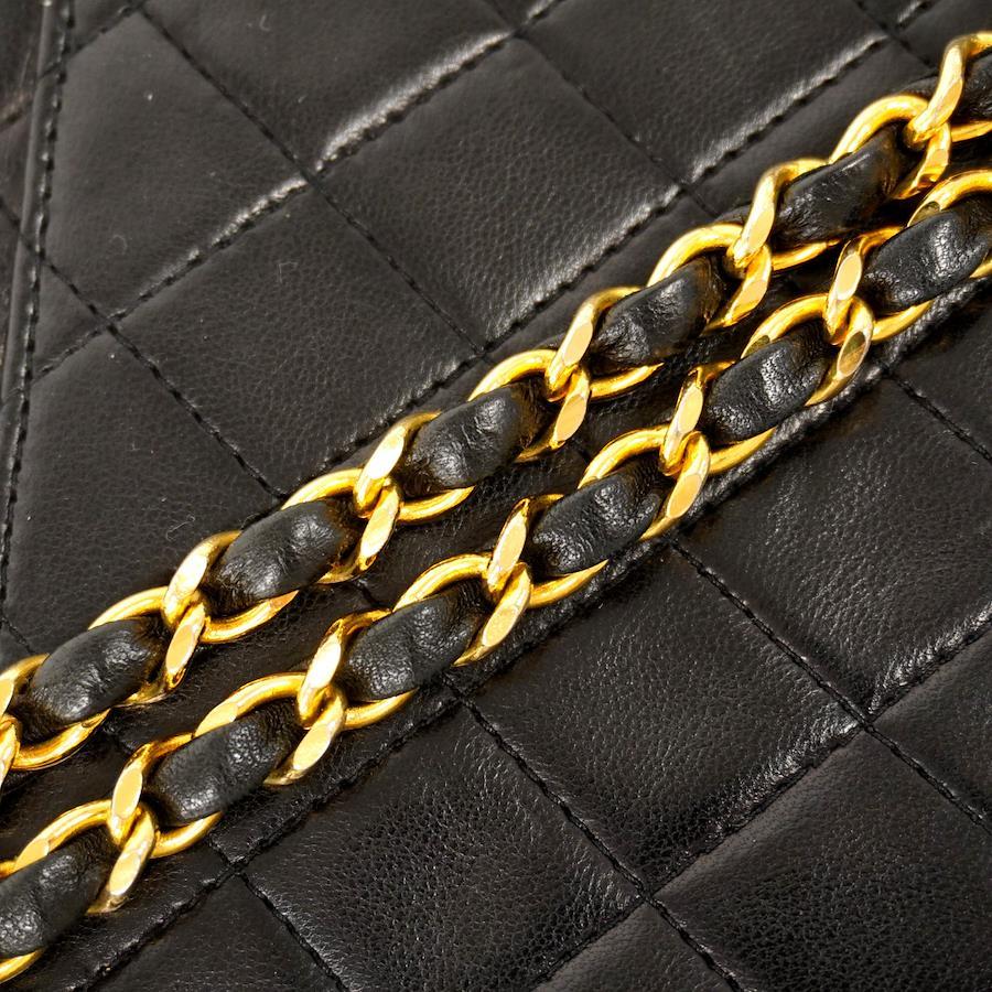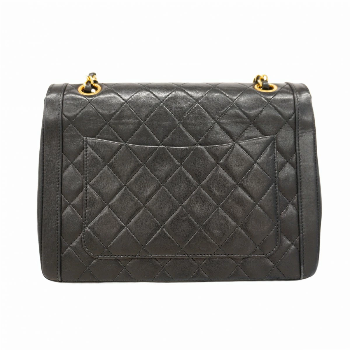 【5ob0361-h】シャネル ショルダーバッグ マトラッセ Wチェーン ラムスキン ブラック ゴールド金具【中古】レディース