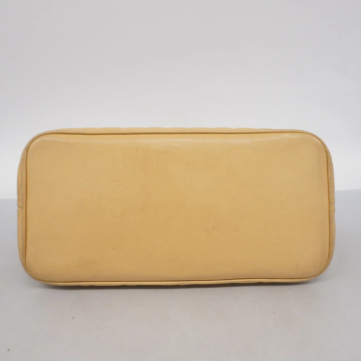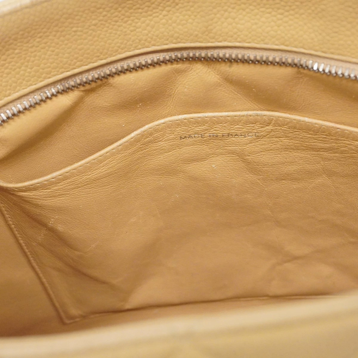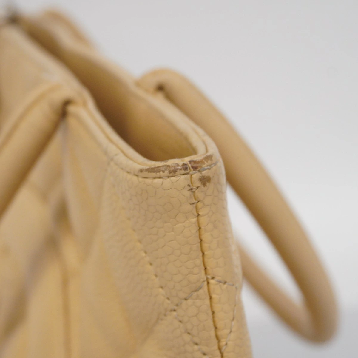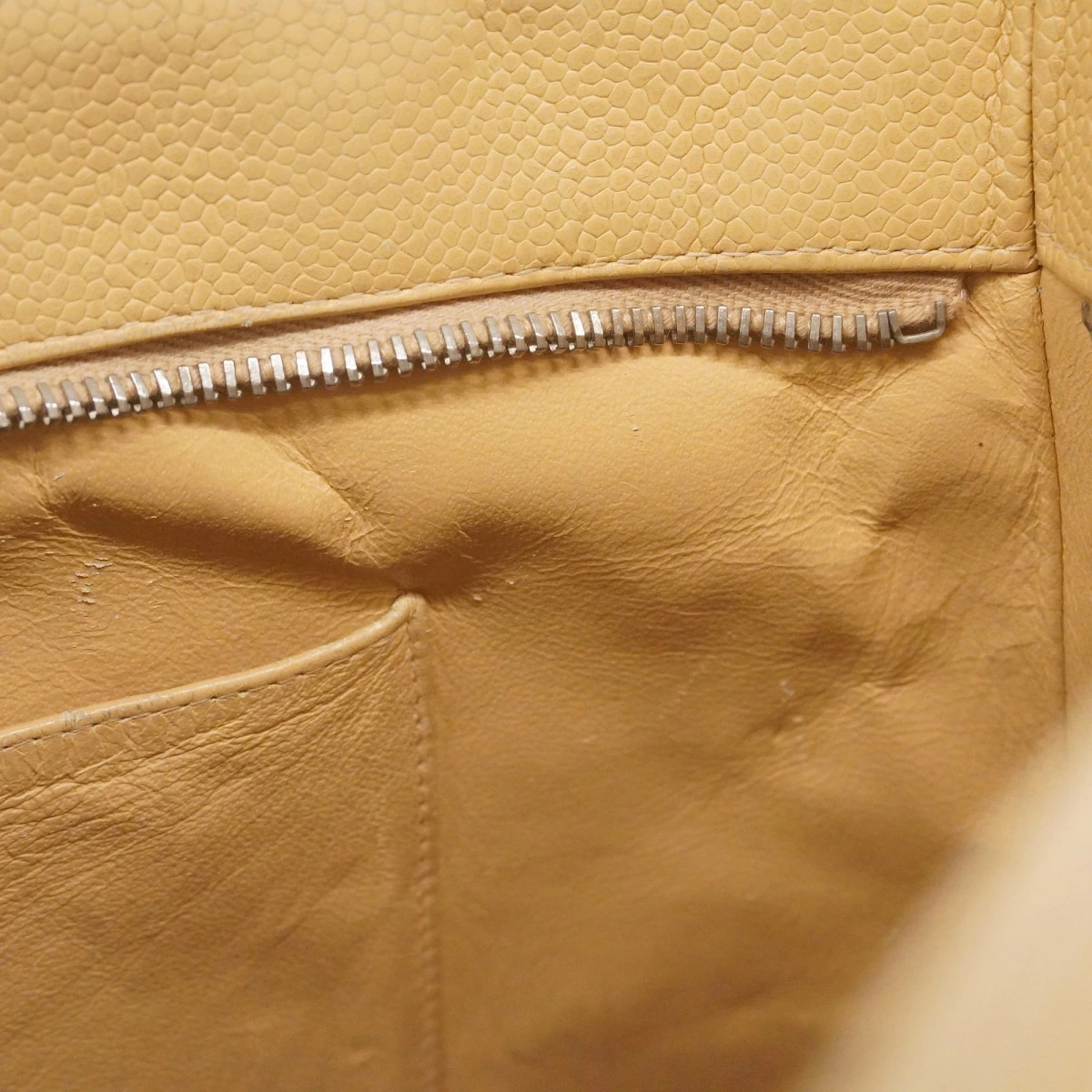 【5ob0478-h】シャネル トートバッグトート キャビアスキン ベージュ シルバー金具【中古】レディース