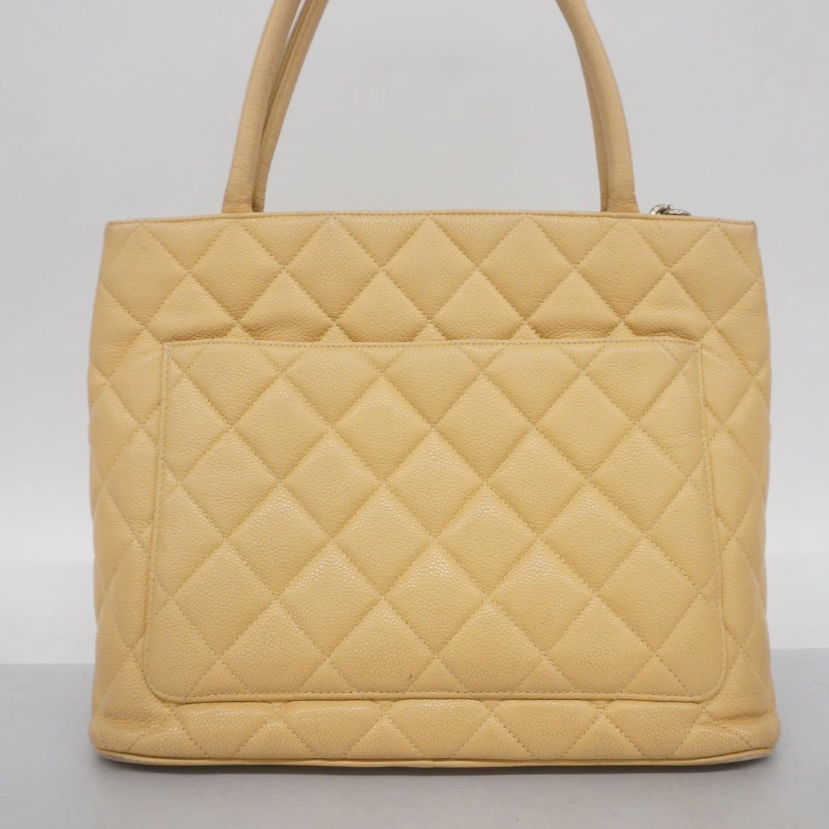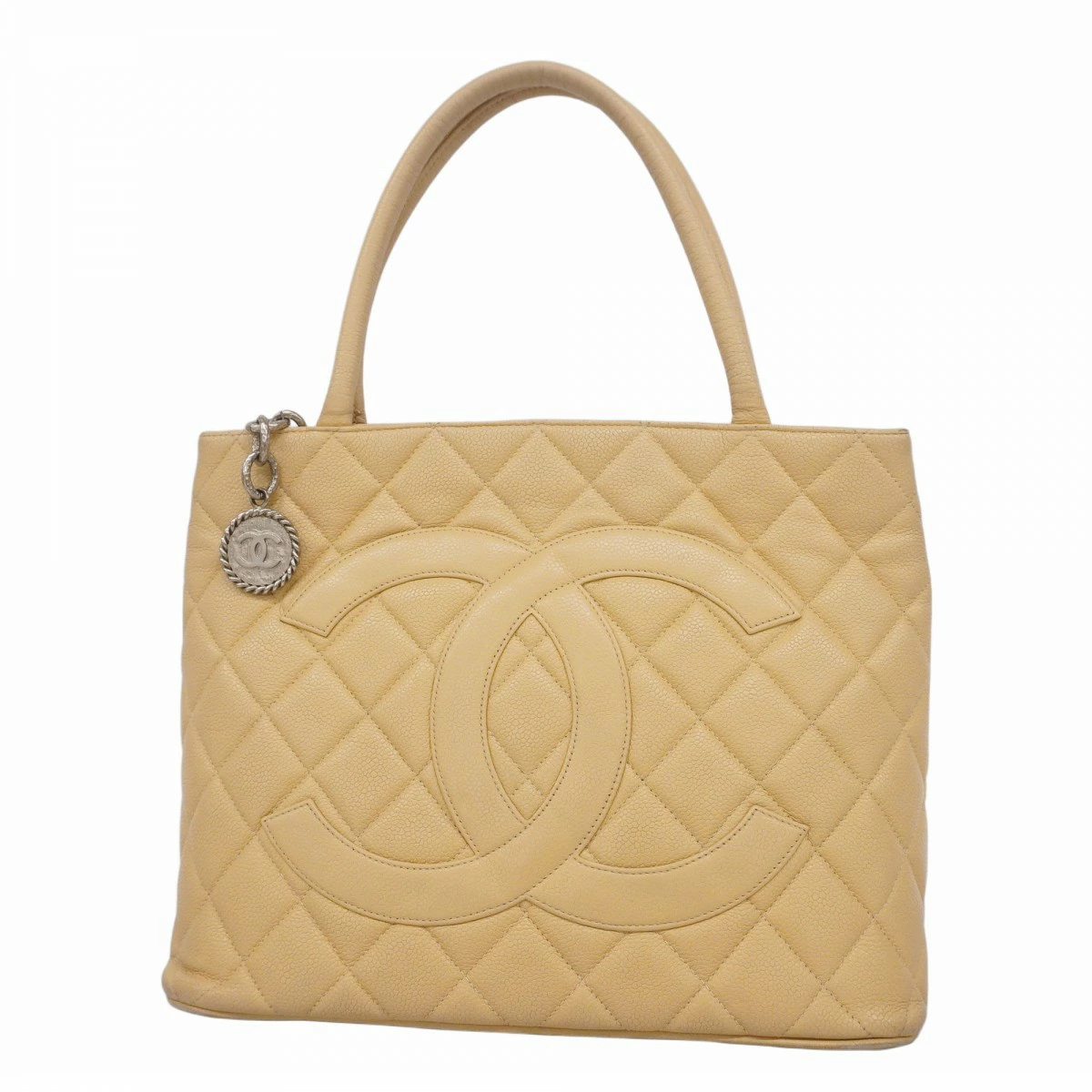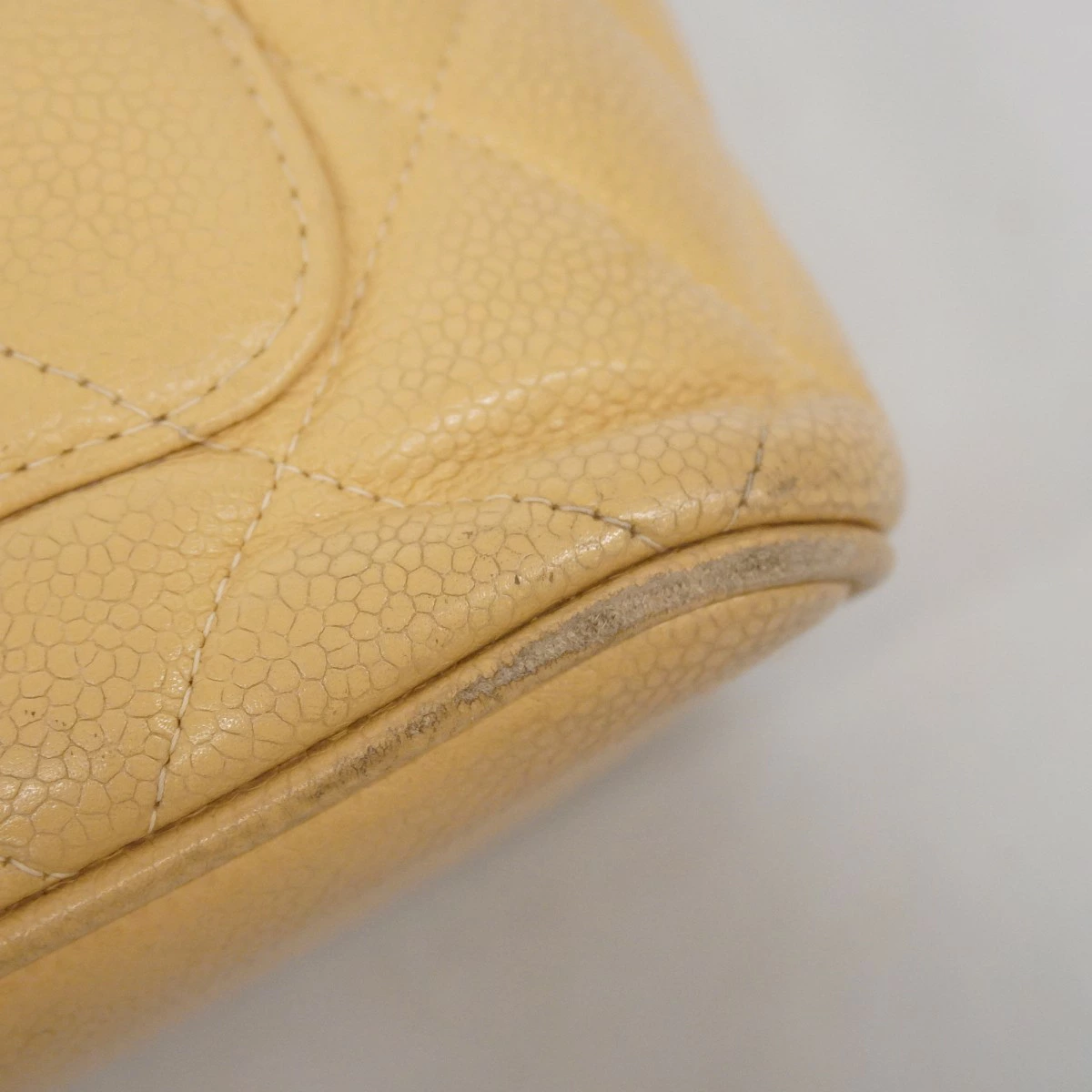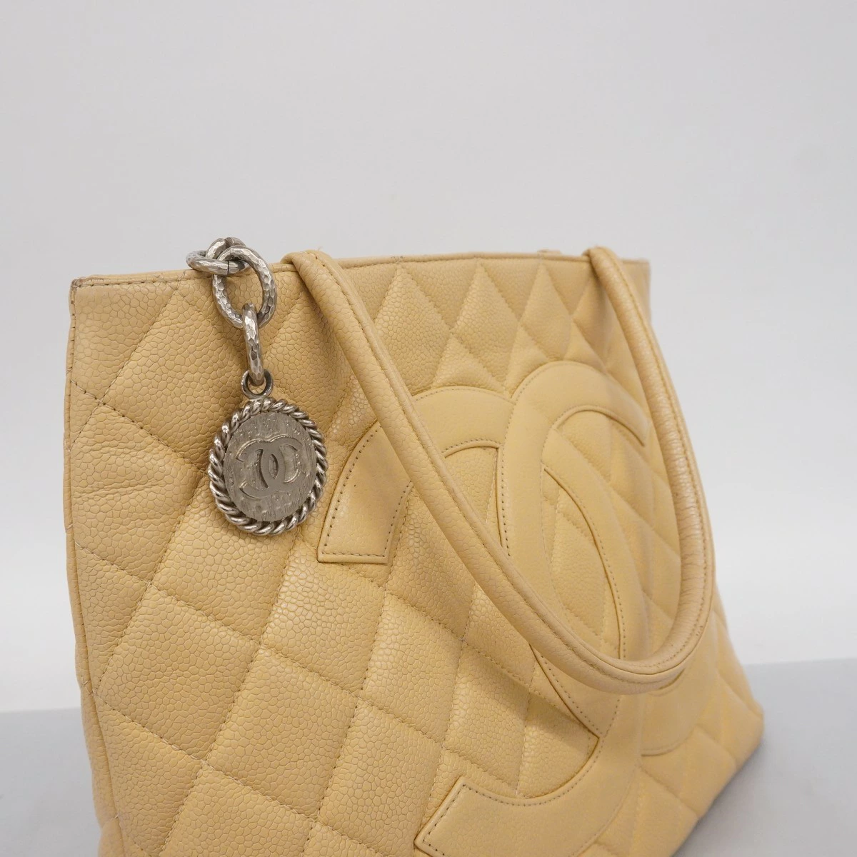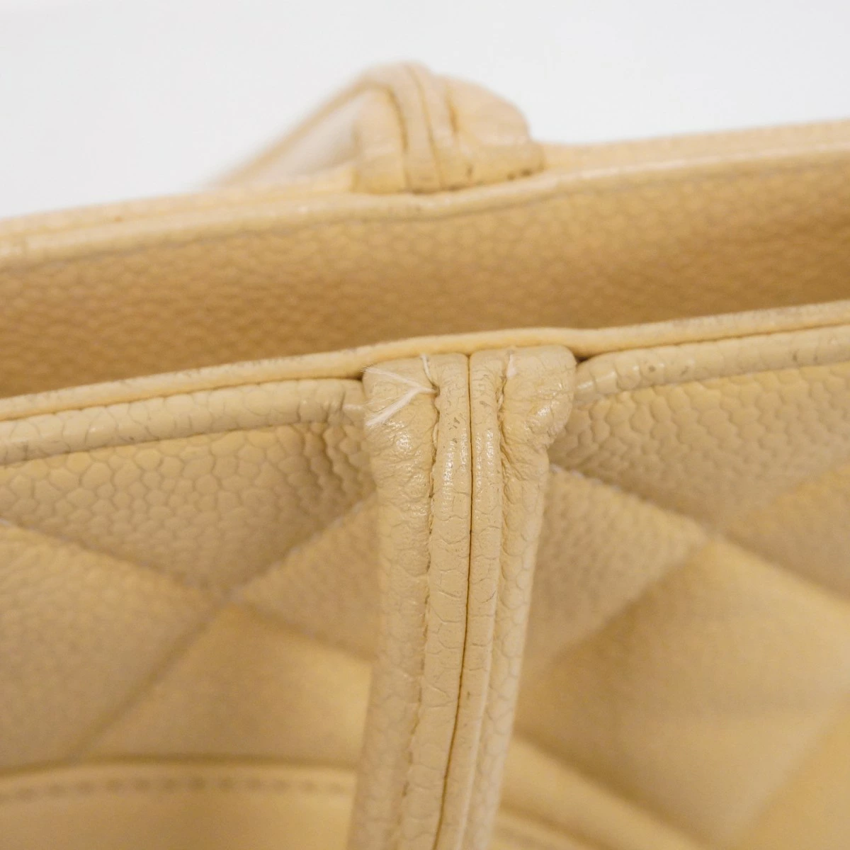 【5ob0478-h】シャネル トートバッグトート キャビアスキン ベージュ シルバー金具【中古】レディース