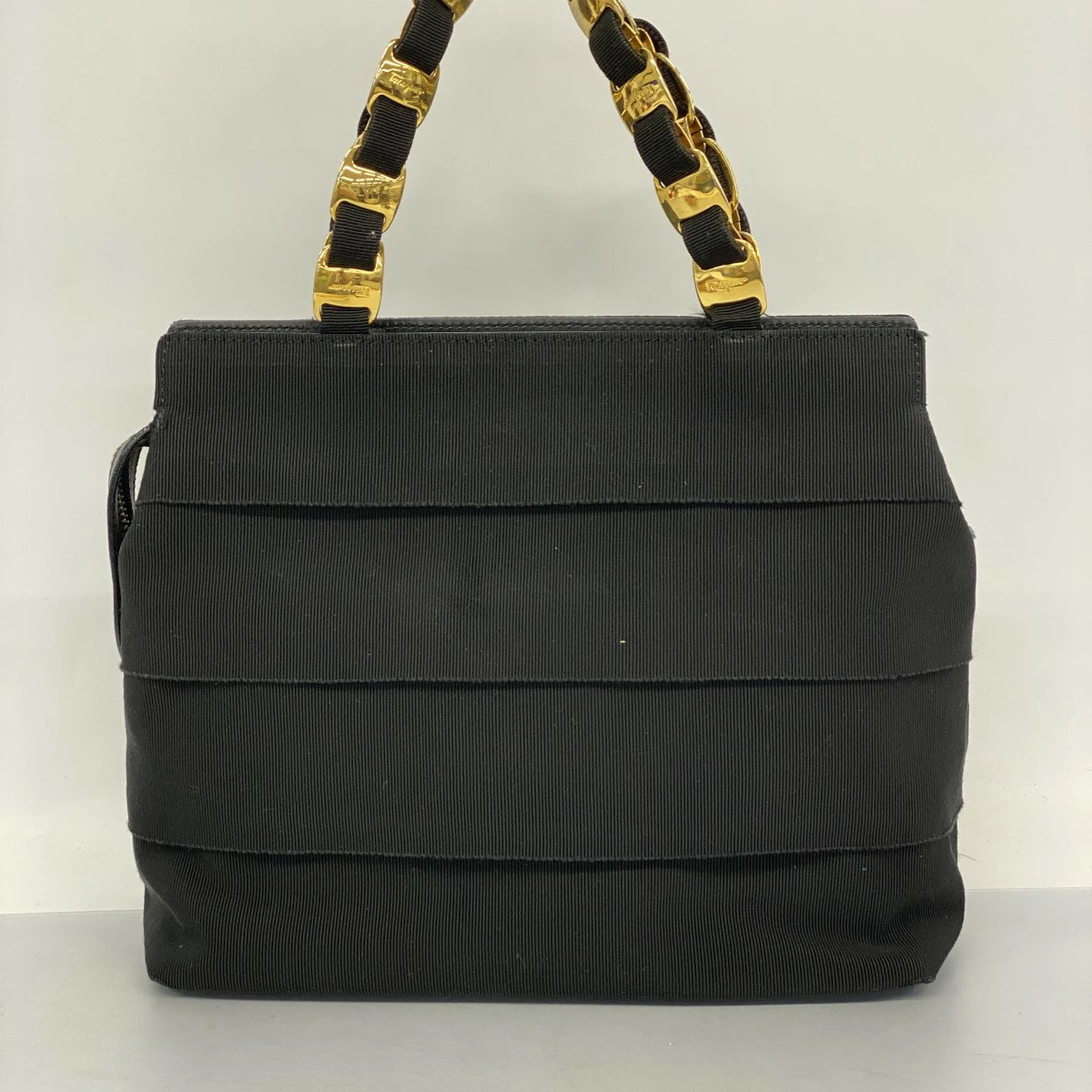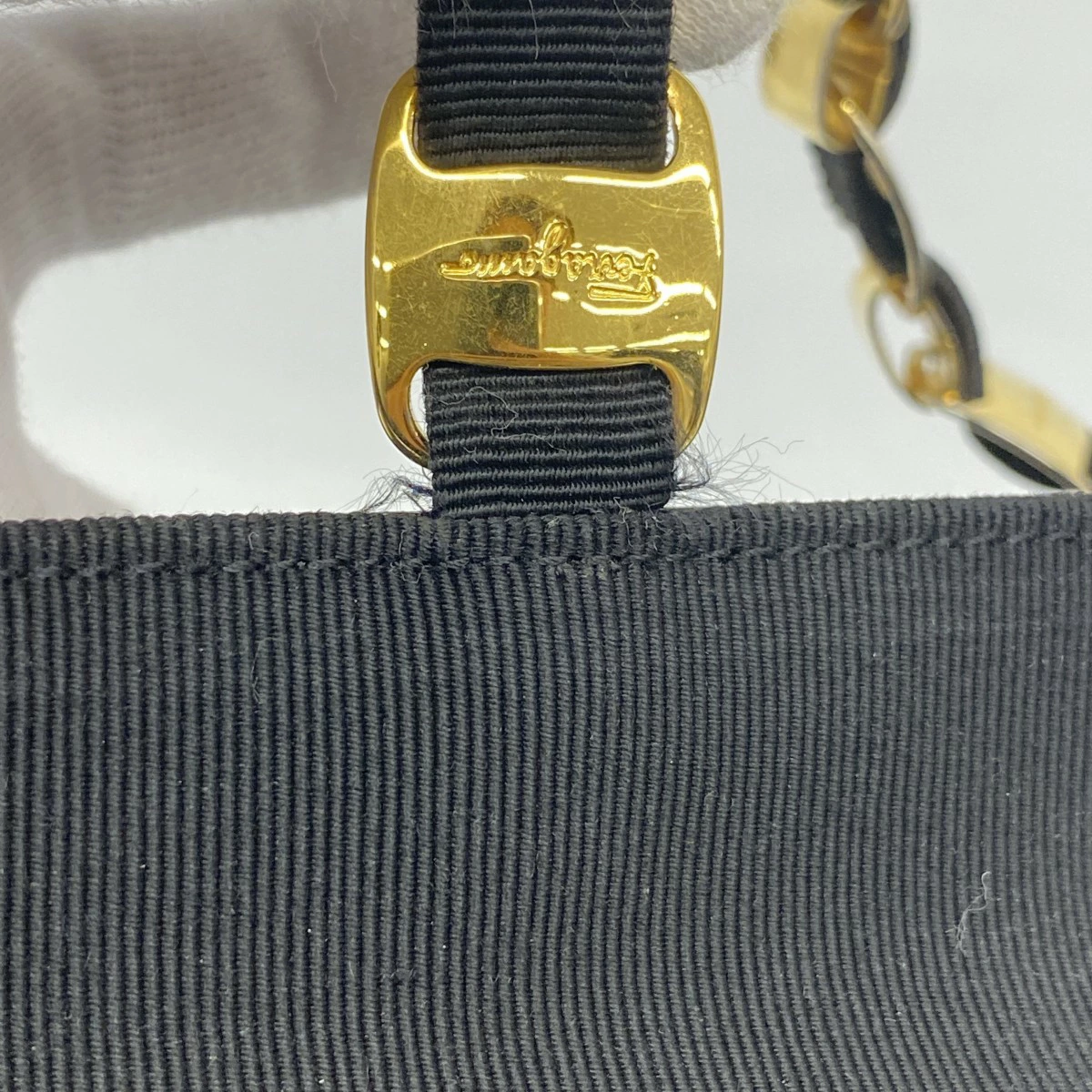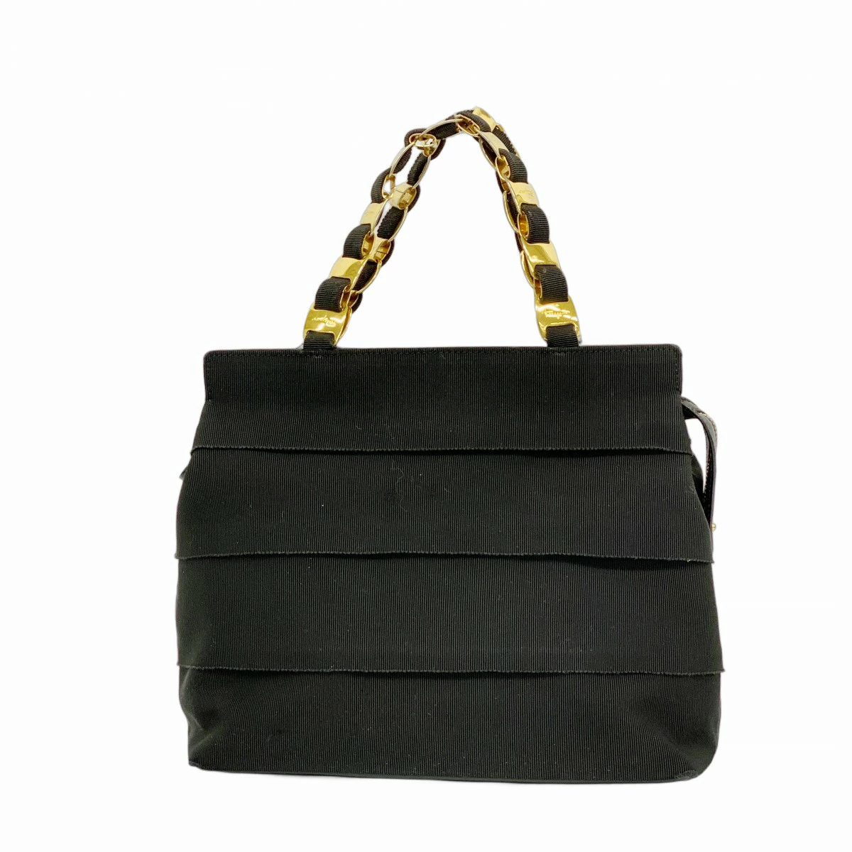 ★SALE【5ob0499】サルヴァトーレフェラガモ ハンドバッグ ヴァラ ナイロンキャンバス ブラック ゴールド金具【中古】レディース