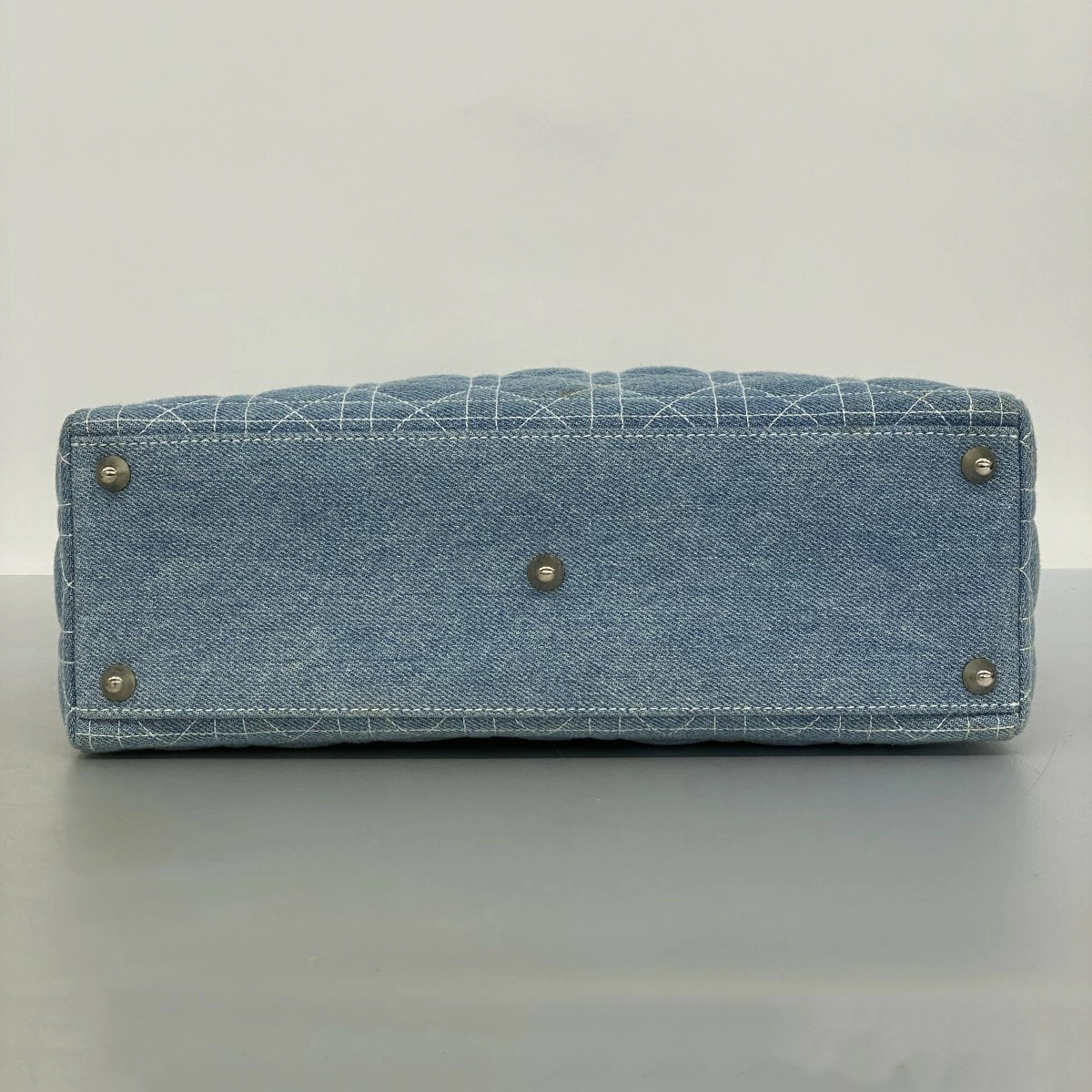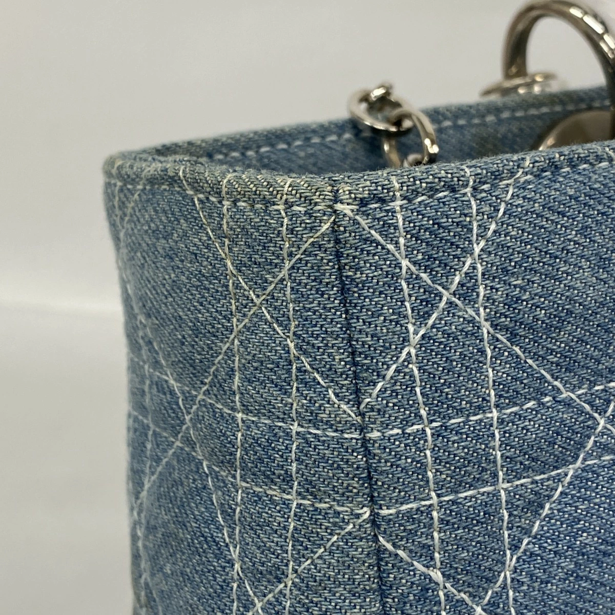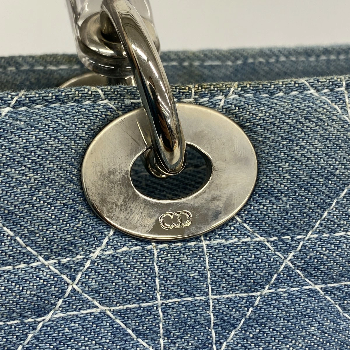【5ob0567】クリスチャンディオール ハンドバッグ カナージュ レディディオール デニム ブルー シルバー金具 2wayバッグ【中古】レディース