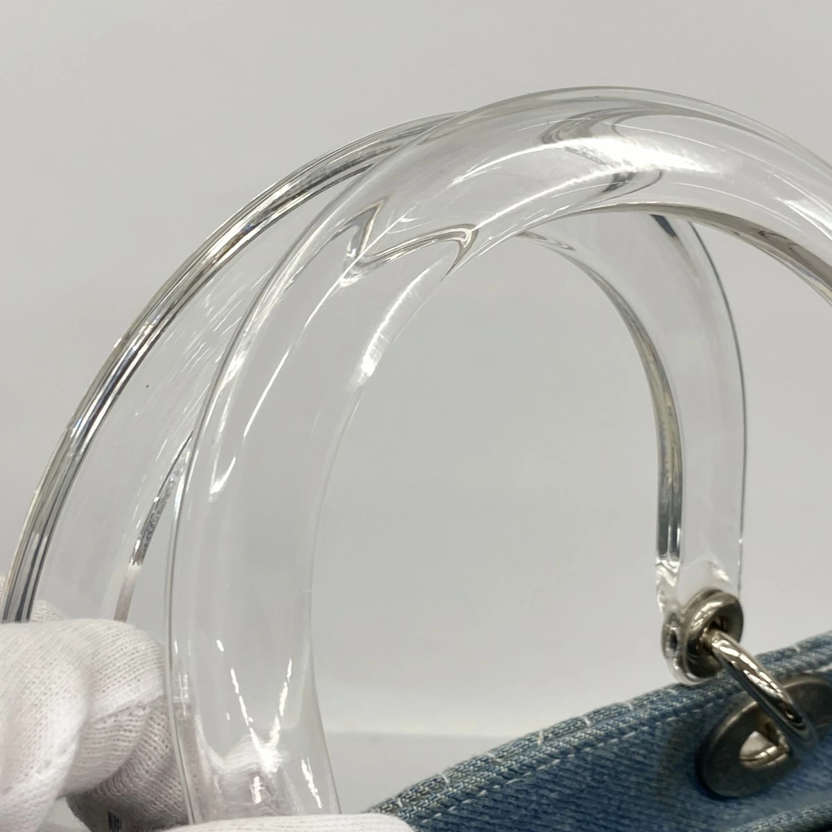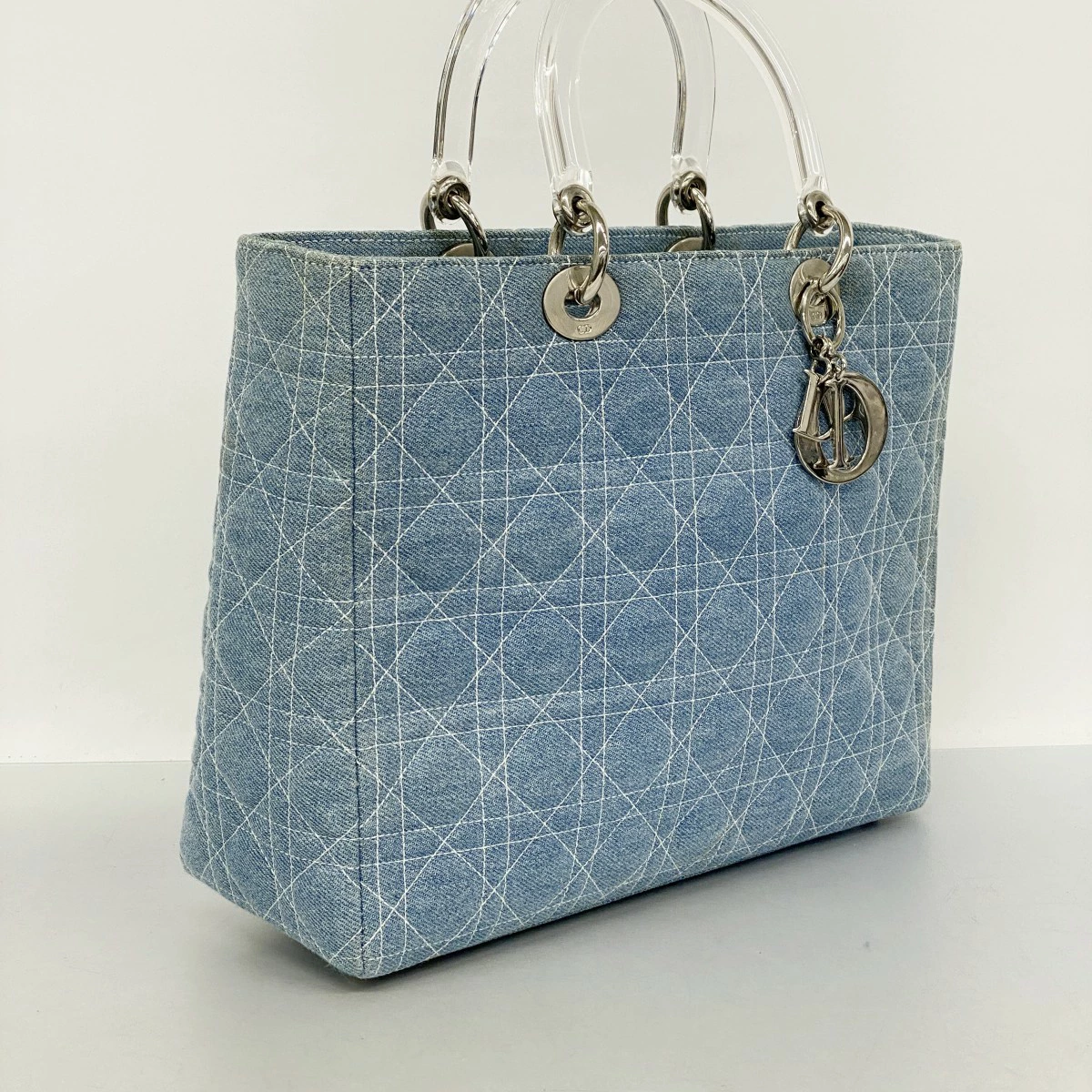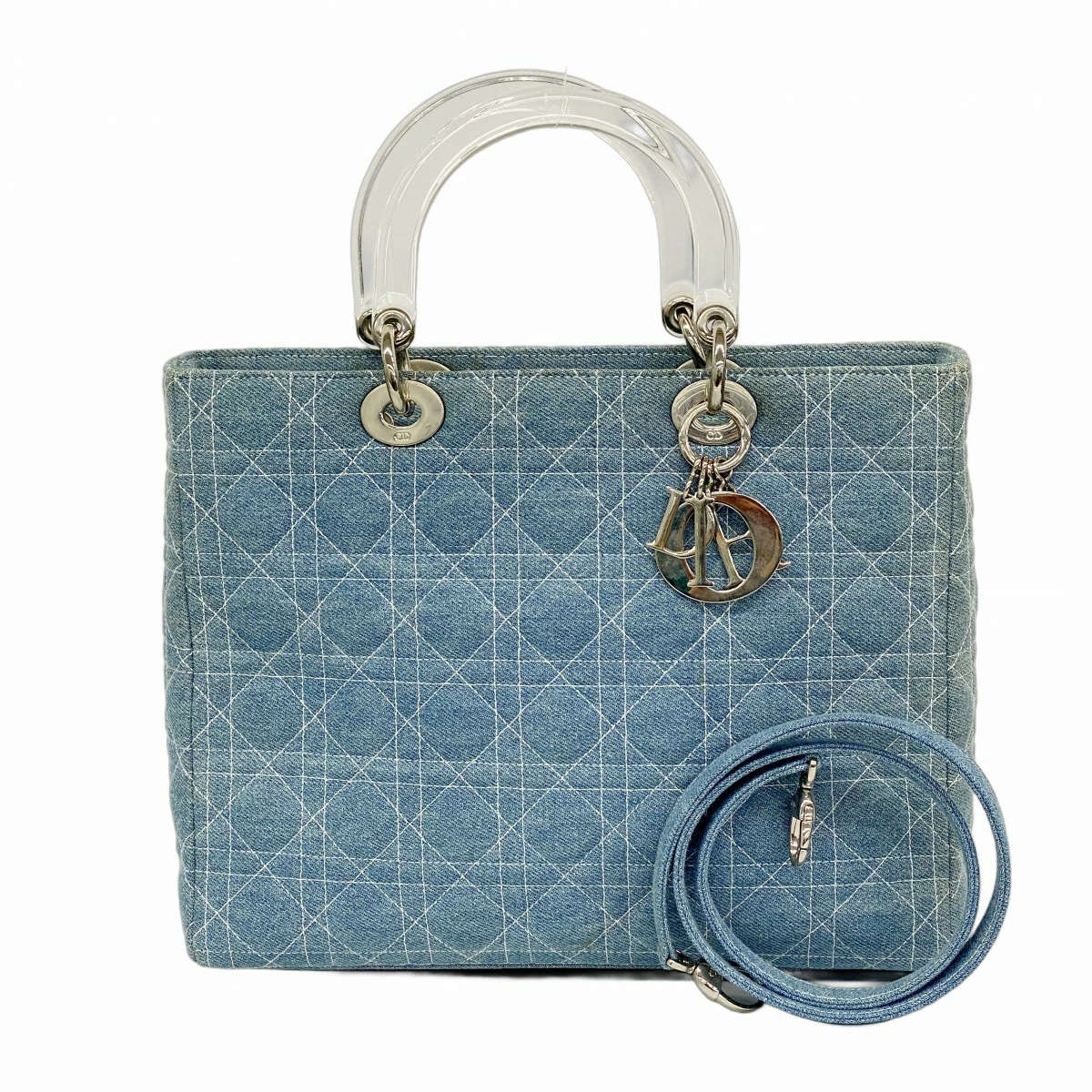 【5ob0567】クリスチャンディオール ハンドバッグ カナージュ レディディオール デニム ブルー シルバー金具 2wayバッグ【中古】レディース