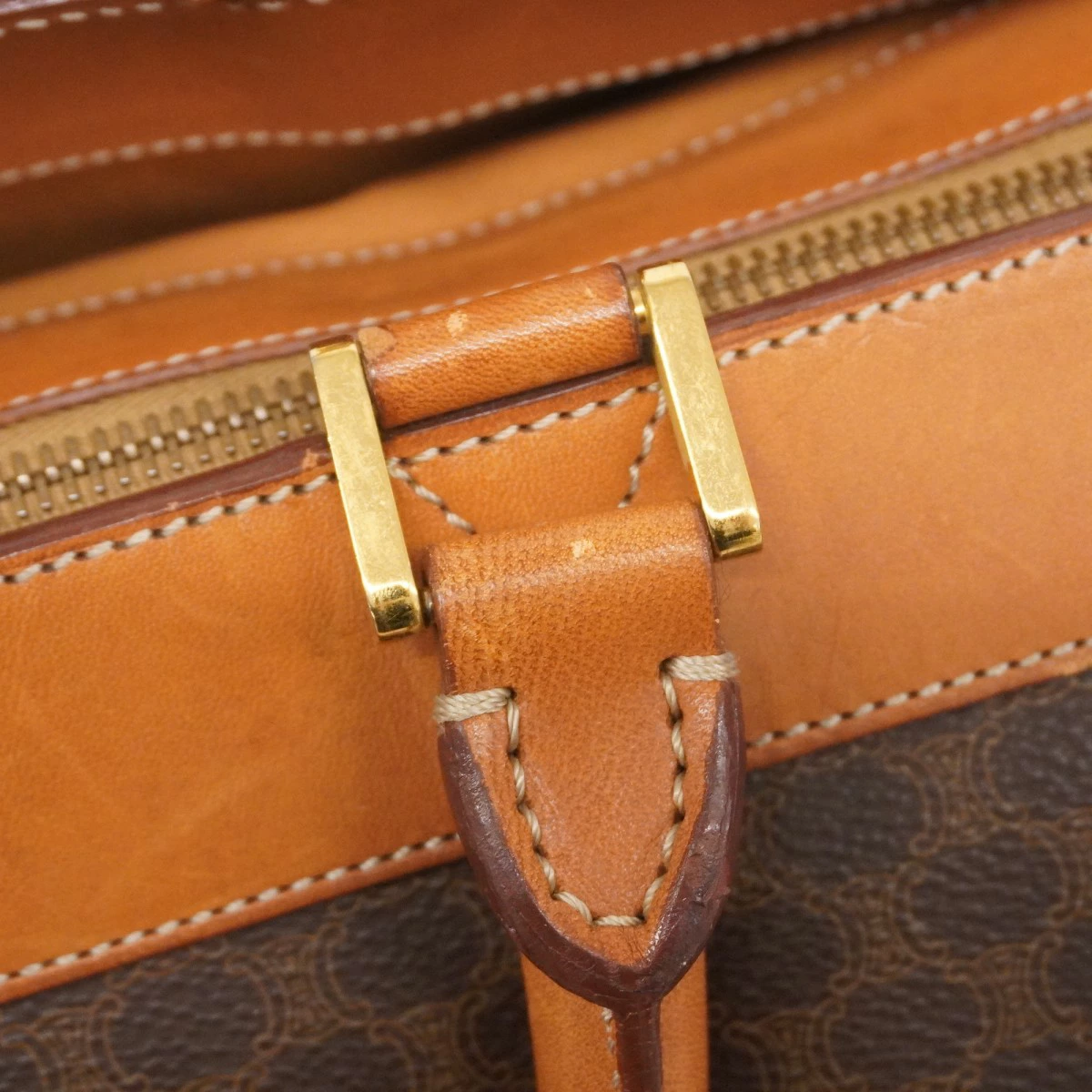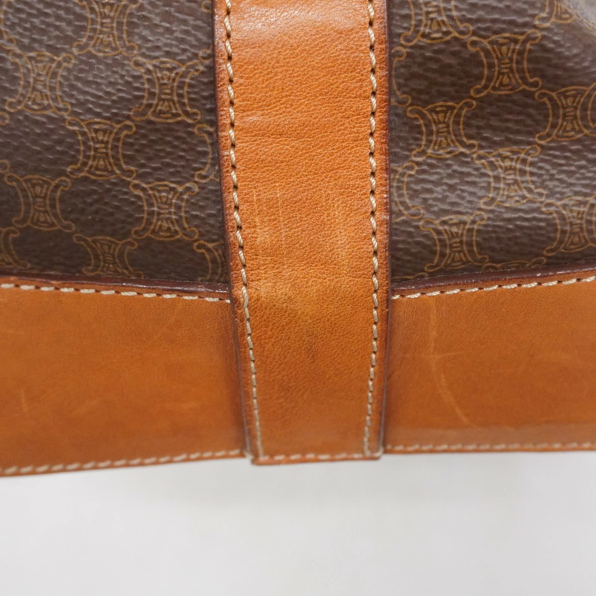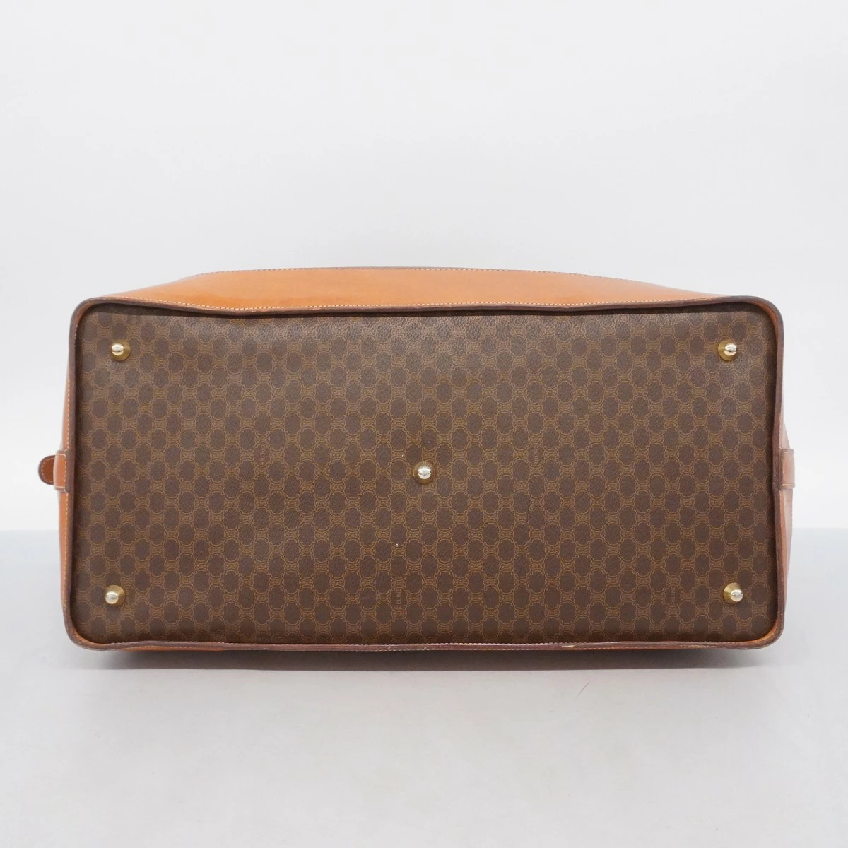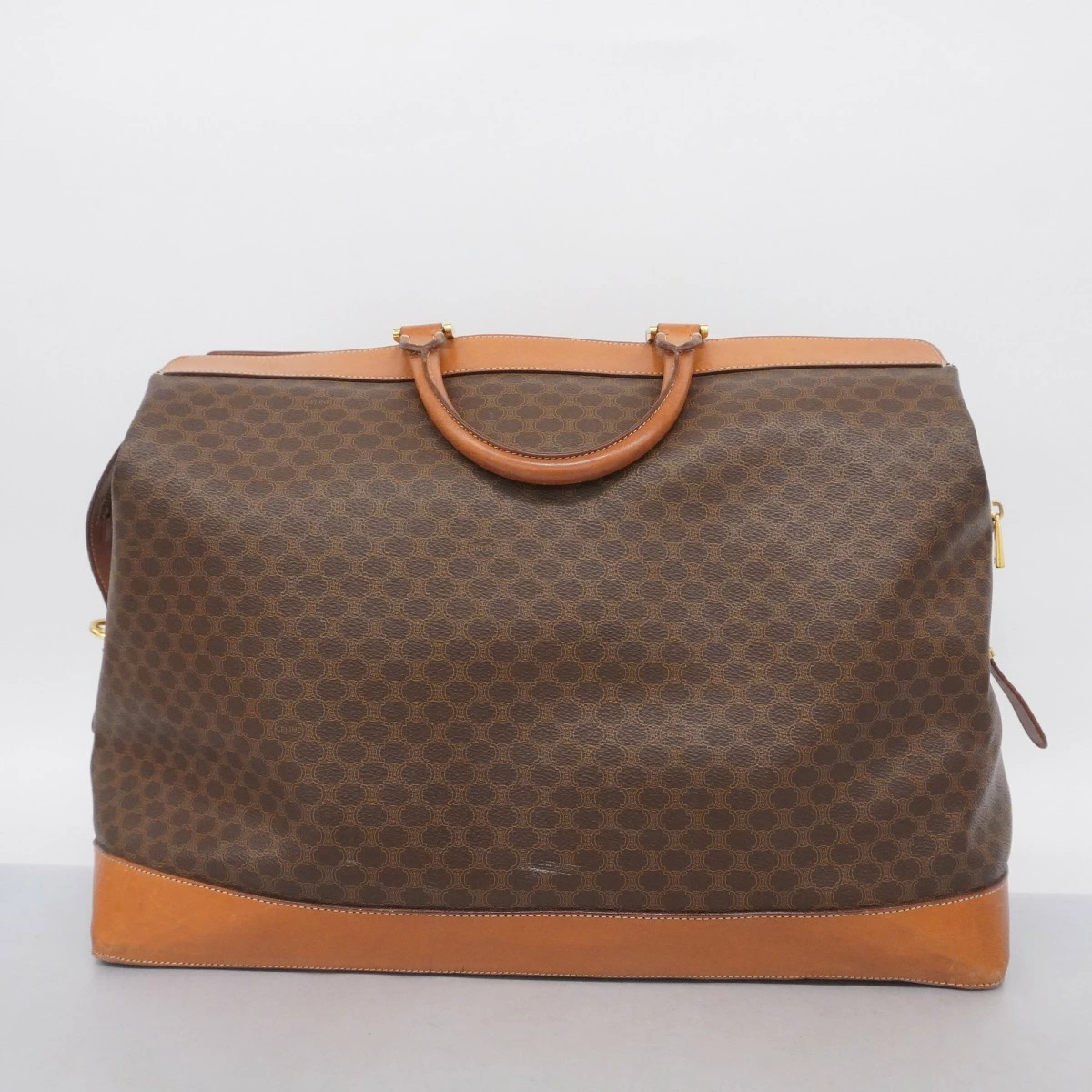 【5ob0593】セリーヌ ボストンバッグ マカダム PVC ブラウン ゴールド金具【中古】レディース