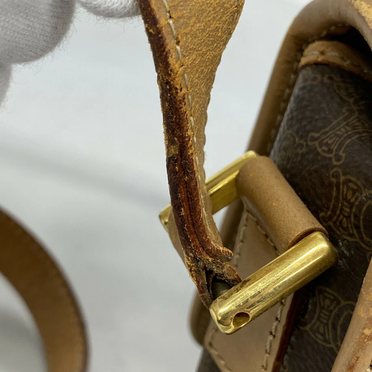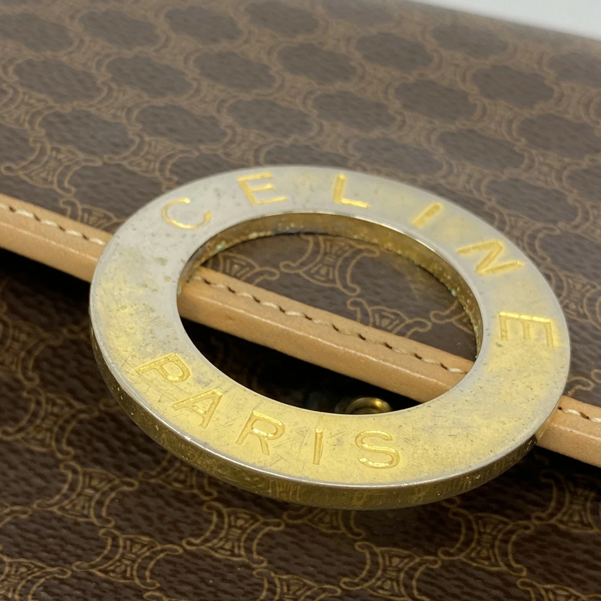 【5ob0619】セリーヌ ショルダーバッグ マカダム PVC ブラウン ゴールド金具【中古】レディース