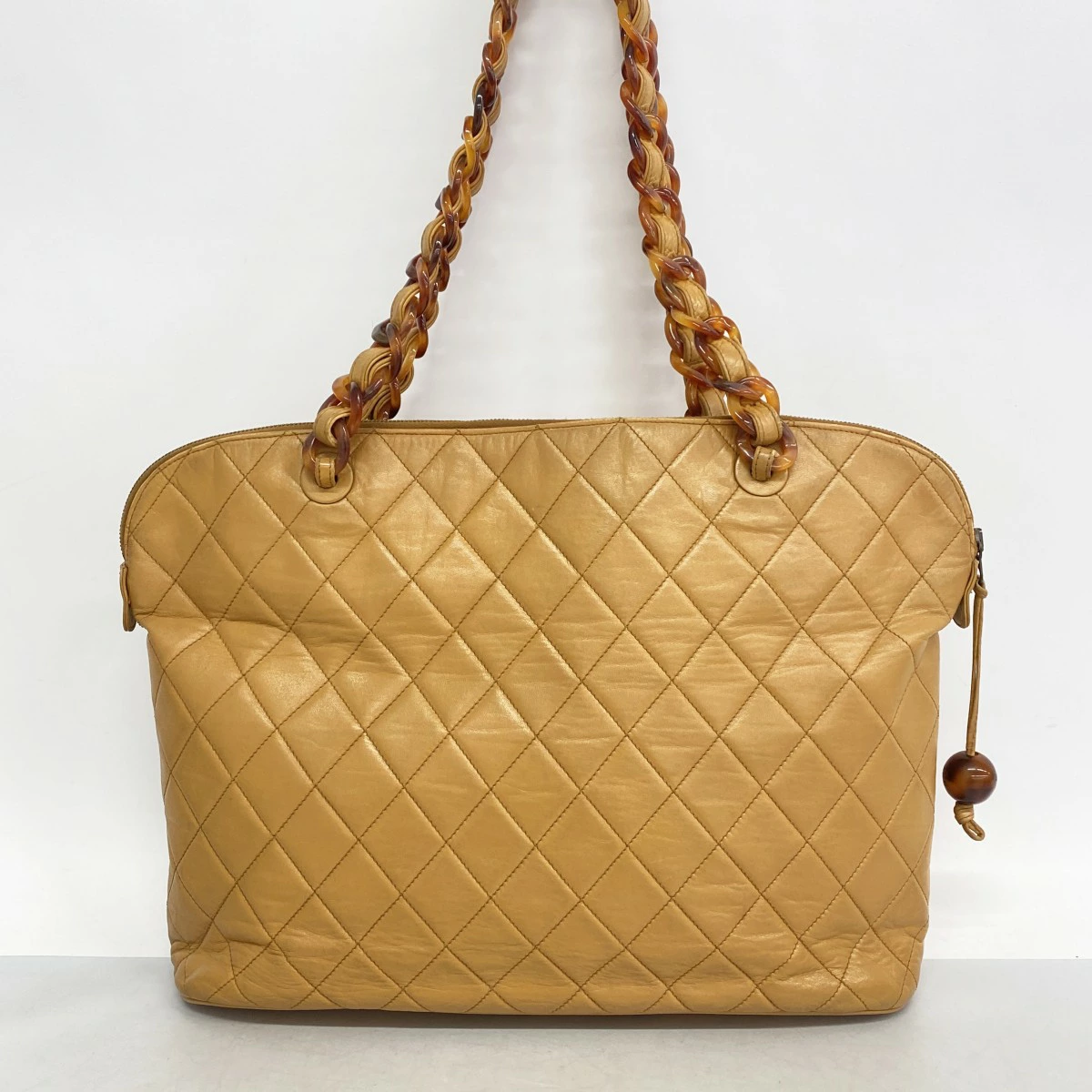 【5ob0752-h】シャネル トートバッグ マトラッセ ラムスキン ブラウン ゴールド金具【中古】レディース