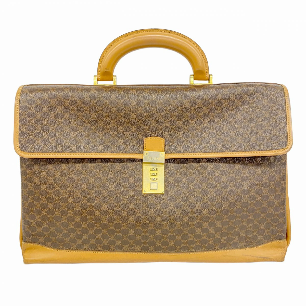 【5ob0760】セリーヌ ブリーフケース マカダム PVC ブラウン ゴールド金具【中古】メンズ