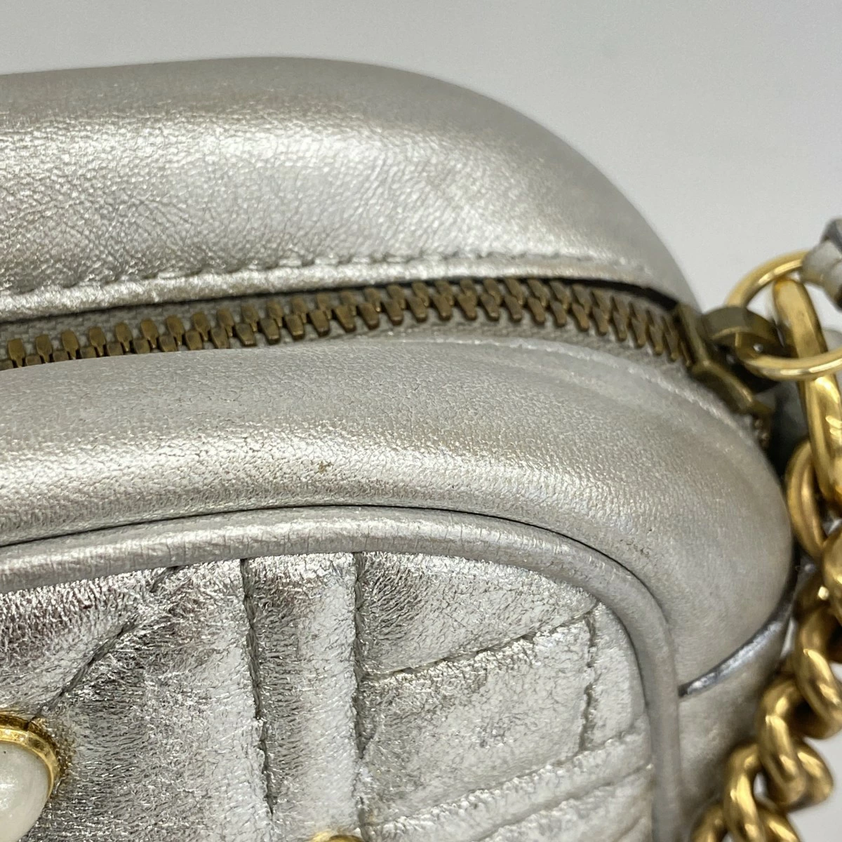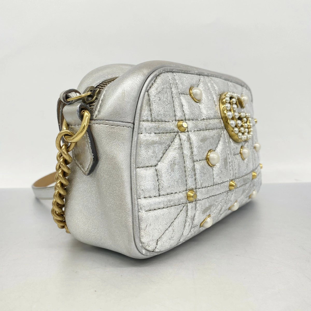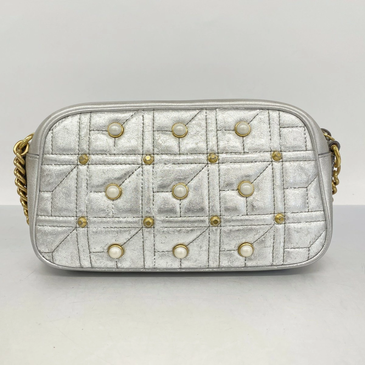 ★最終価格★SALE【5ob0791】グッチ ショルダーバッグ GGマーモント 447632 レザー シルバー ゴールド金具【中古】レディース