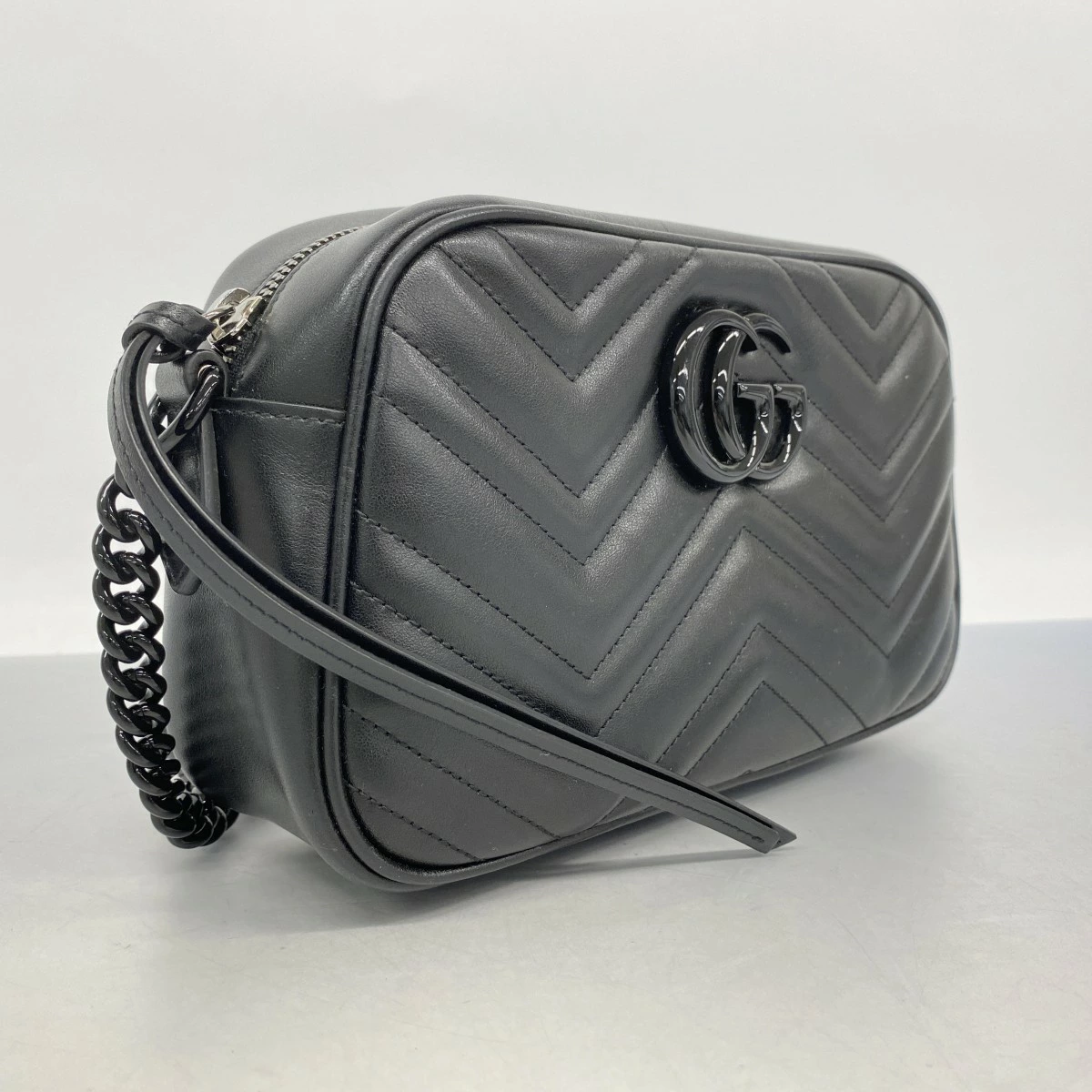 ★最終価格【5ob0885】グッチ ショルダーバッグ GGマーモント 447632 レザー ブラック【中古】レディース