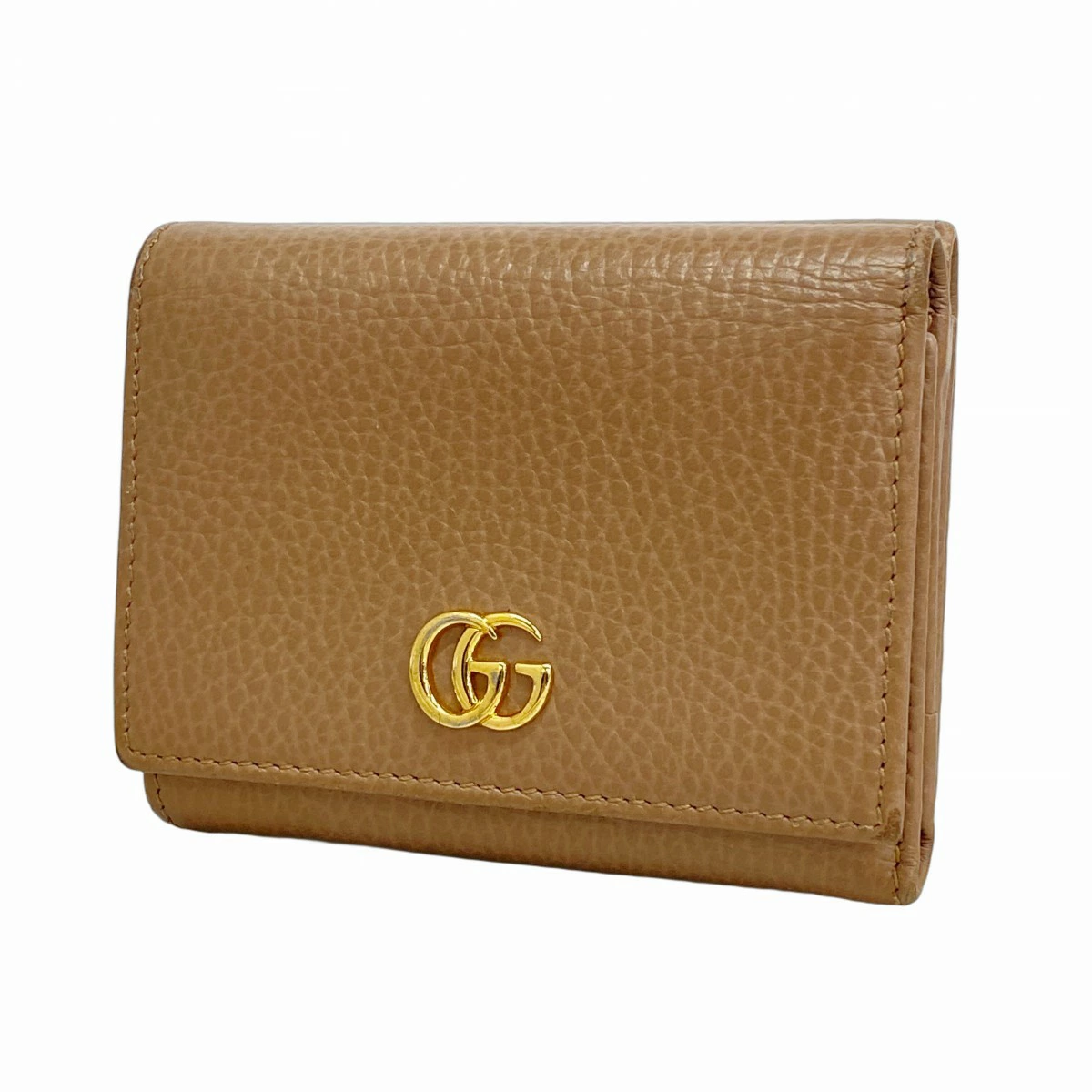 ★SALE【5ob0898】グッチ 三つ折り財布 GGマーモント 474746 レザー ブラウン ゴールド金具【中古】レディース
