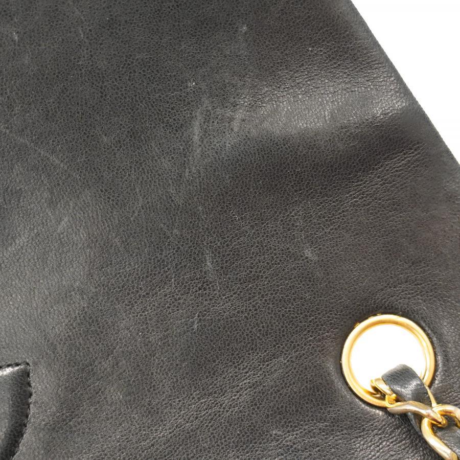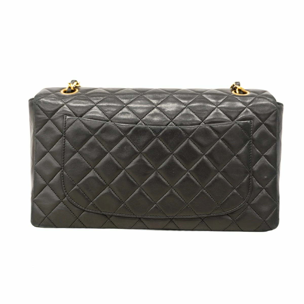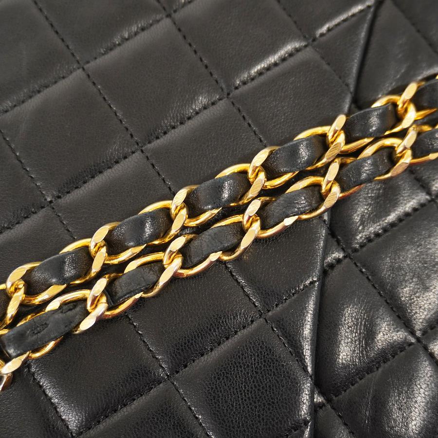 【5ob0987-h】シャネル ショルダーバッグ マトラッセ Wチェーン ラムスキン ブラック ゴールド金具【中古】レディース