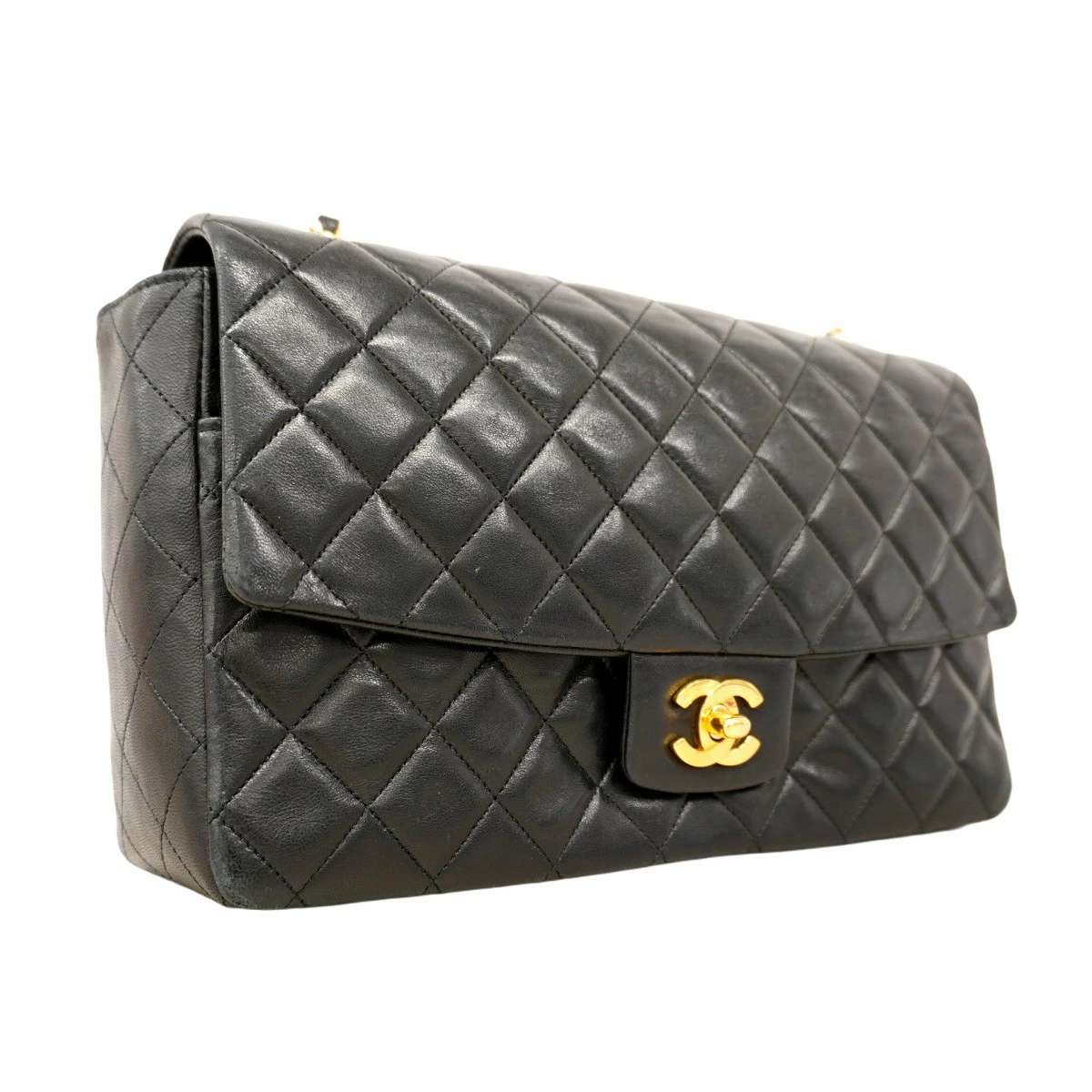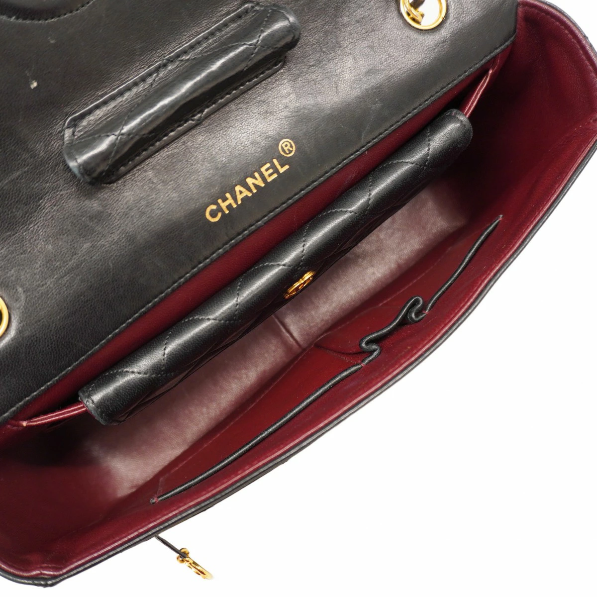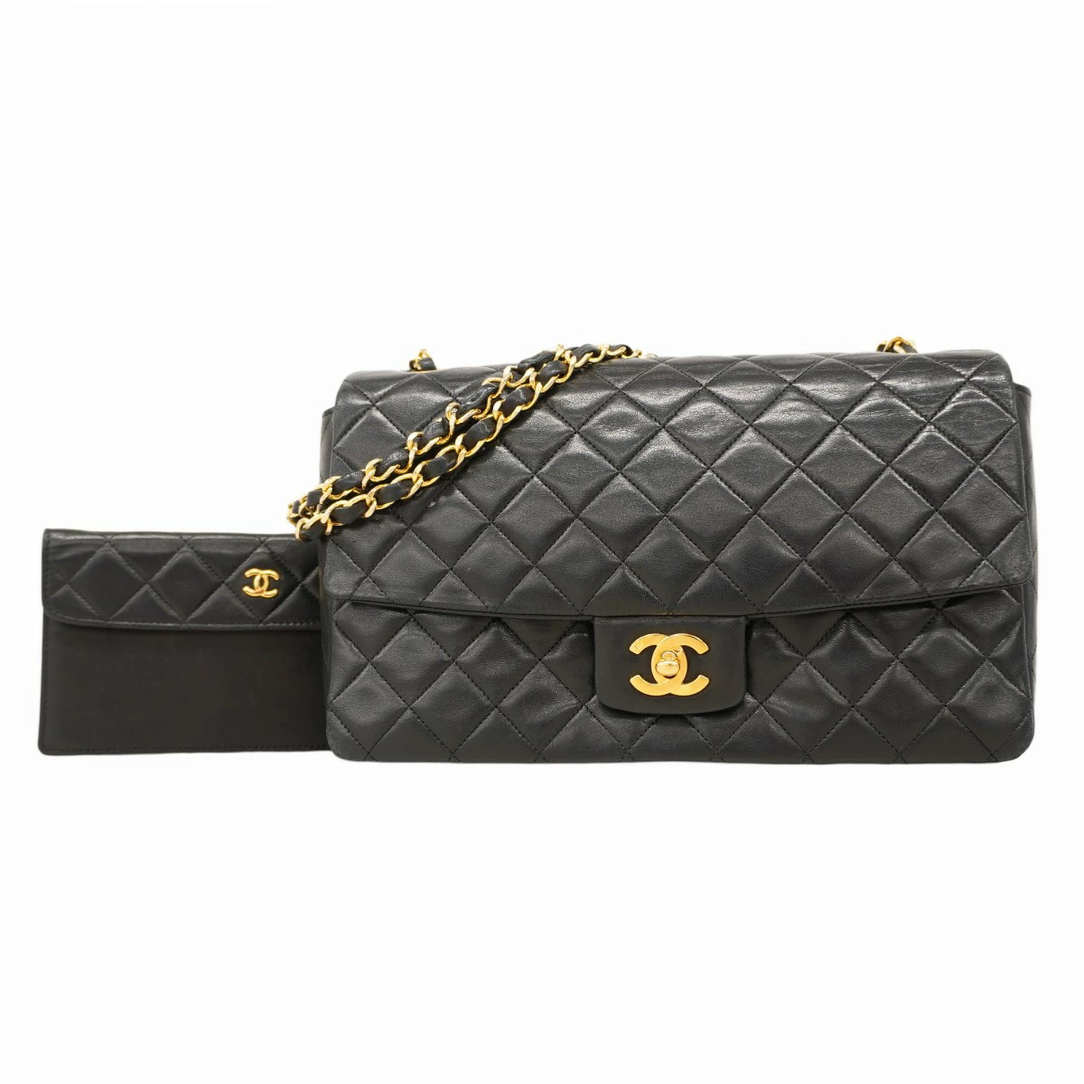 【5ob0987-h】シャネル ショルダーバッグ マトラッセ Wチェーン ラムスキン ブラック ゴールド金具【中古】レディース