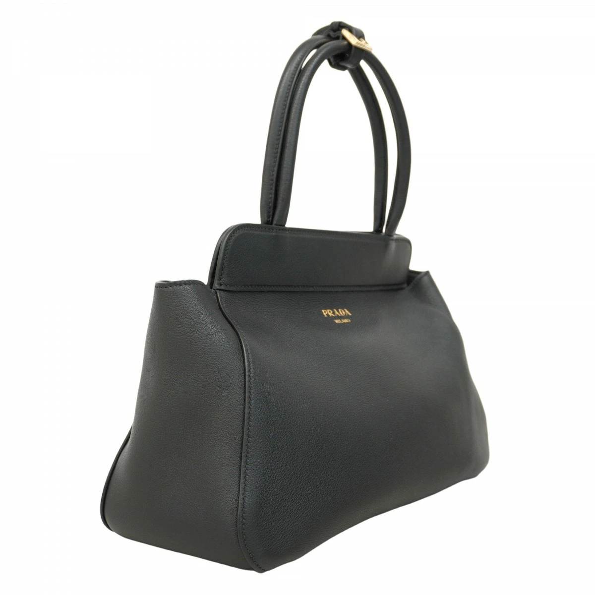 【5ob0999-h】プラダ ハンドバッグ レザー ブラック ゴールド金具【中古】レディース