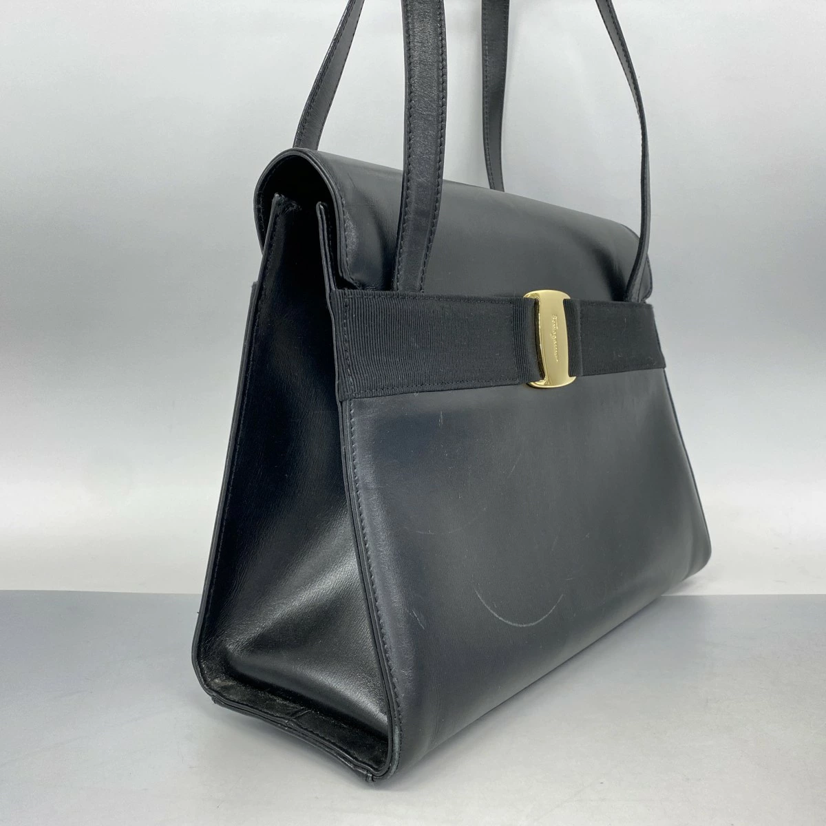 ★最終価格【5ob1066】サルヴァトーレフェラガモ ショルダーバッグ ヴァラ レザー ブラック ゴールド金具【中古】