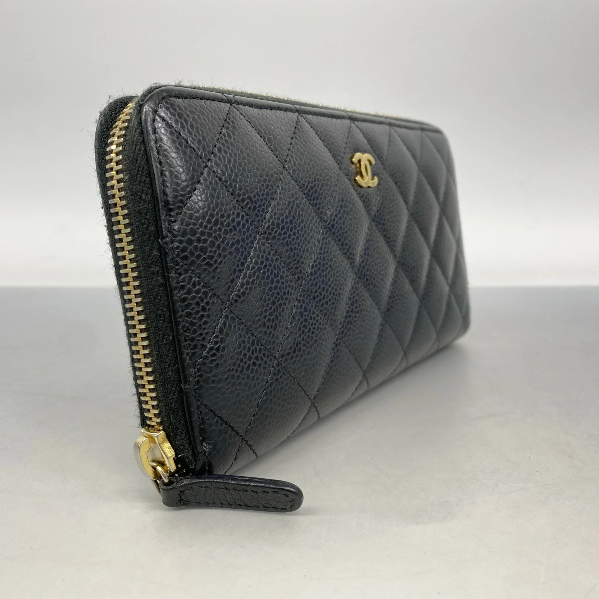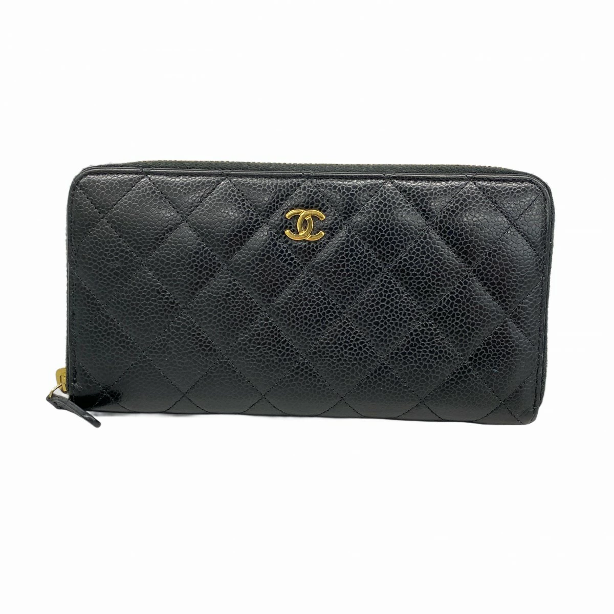 ★最終価格【5ob1097】シャネル 長財布 マトラッセ キャビアスキン ブラック ゴールド金具【中古】レディース
