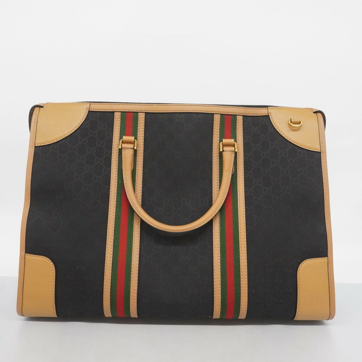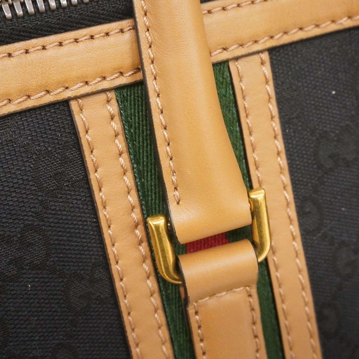 ★SALE【5ob1167】グッチ ボストンバッグ GGキャンバス/シェリーライン 715773 キャンバス ブラック ベージュ ゴールド金具 2wayバッグ【中古】メンズ レディース ユニセックス