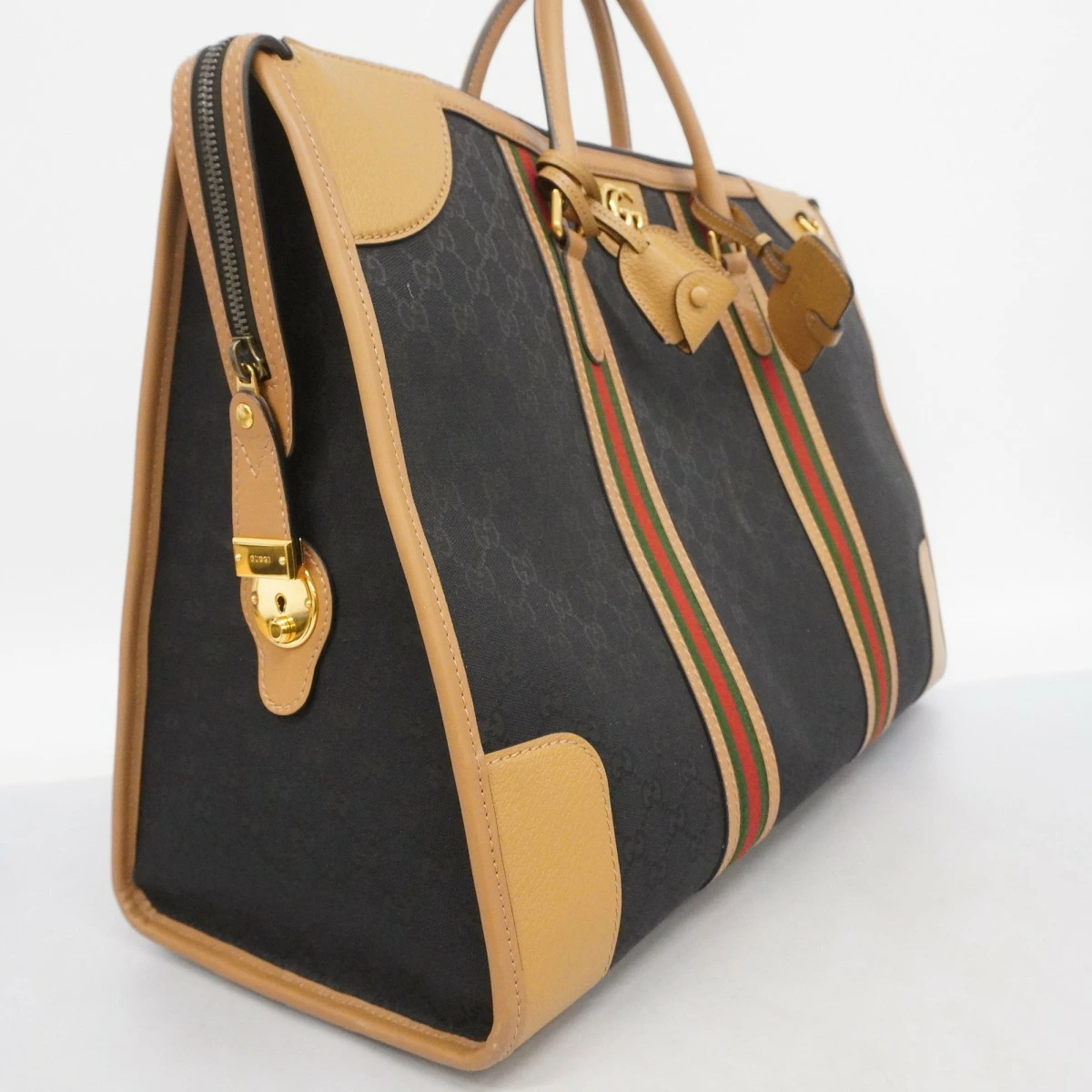 [5ob1167] Gucci Boston Bag, GG Canvas/Sherry Line, 715773, Canvas, Black, Beige, Gold Hardware, 2-Way Bag, Pre-Owned, Men's, Women's, Unisex