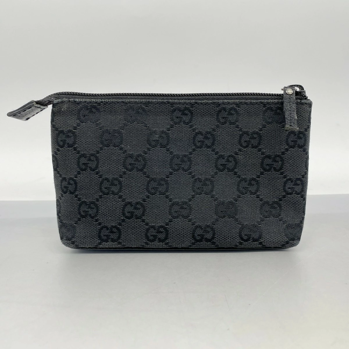 ★SALE【5ob1193】グッチ ポーチ GGキャンバス 115237 キャンバス ブラック シルバー金具【中古】レディース